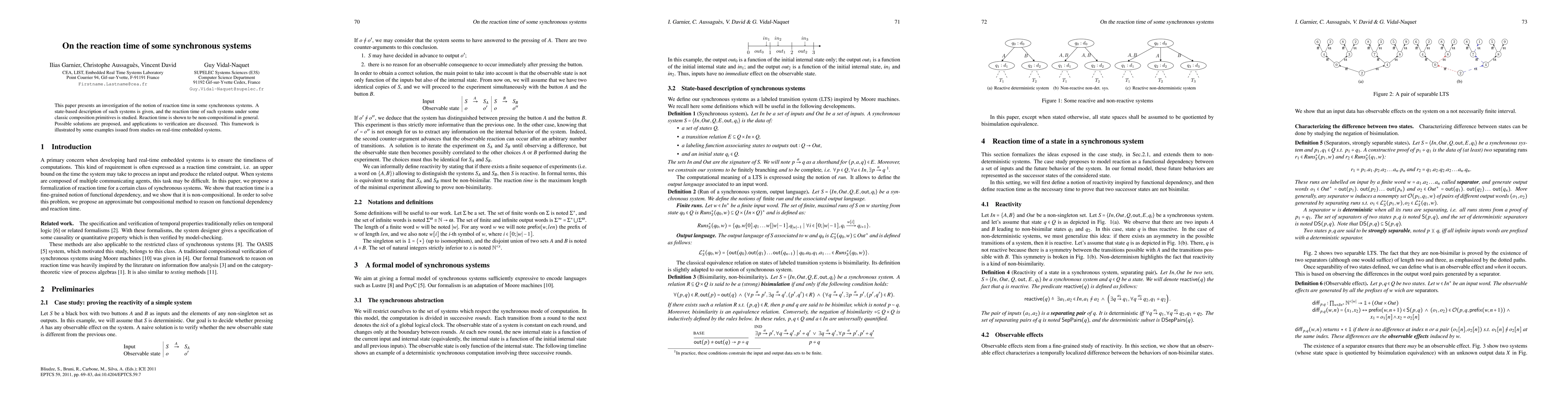This paper investigates reaction time in synchronous systems, finding it non-compositional and proposing solutions with applications to real-time embedded system verification.