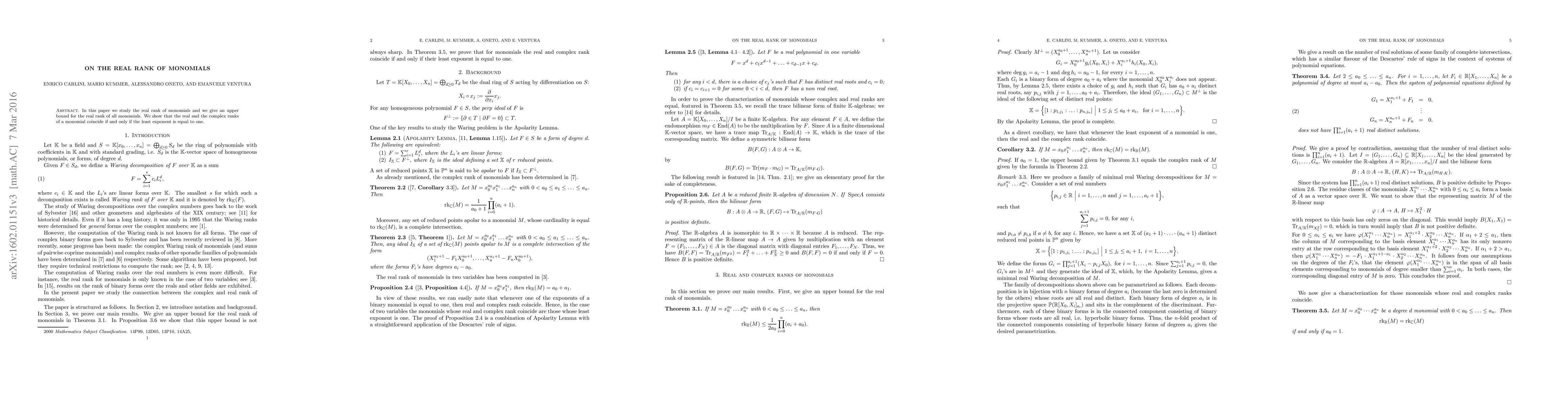 Summary: This paper investigates the real rank of monomials and establishes an upper bound for it. It concludes that the real and complex ranks of a monomial are the same if and only if the smallest exponent of the monomial is one.