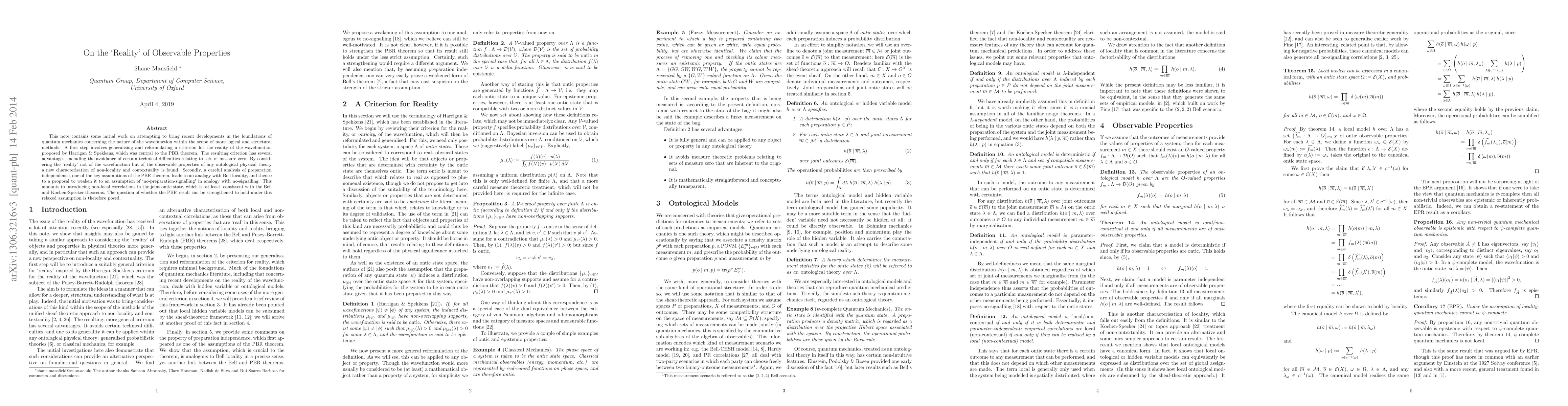 This note contains some initial work on attempting to bring recent developments in the foundations of quantum mechanics concerning the nature of the wavefunction within the scope of more logical and structural methods. A first step involves generalising and reformulating a criterion for the reality of the wavefunction proposed by Harrigan & Spekkens, which was central to the PBR theorem. The resulting criterion has several advantages, including the avoidance of certain technical difficulties relating to sets of measure zero. By considering the 'reality' not of the wavefunction but of the observable properties of any ontological physical theory a novel characterisation of non-locality and contextuality is found. Secondly, a careful analysis of preparation independence, one of the key assumptions of the PBR theorem, leads to an analogy with Bell locality, and thence to a proposal to weaken it to an assumption of `no-preparation-signalling' in analogy with no-signalling. This amounts to introducing non-local correlations in the joint ontic state, which is, at least, consistent with the Bell and Kochen-Specker theorems. The question of whether the PBR result can be strengthened to hold under this relaxed assumption is therefore posed.
