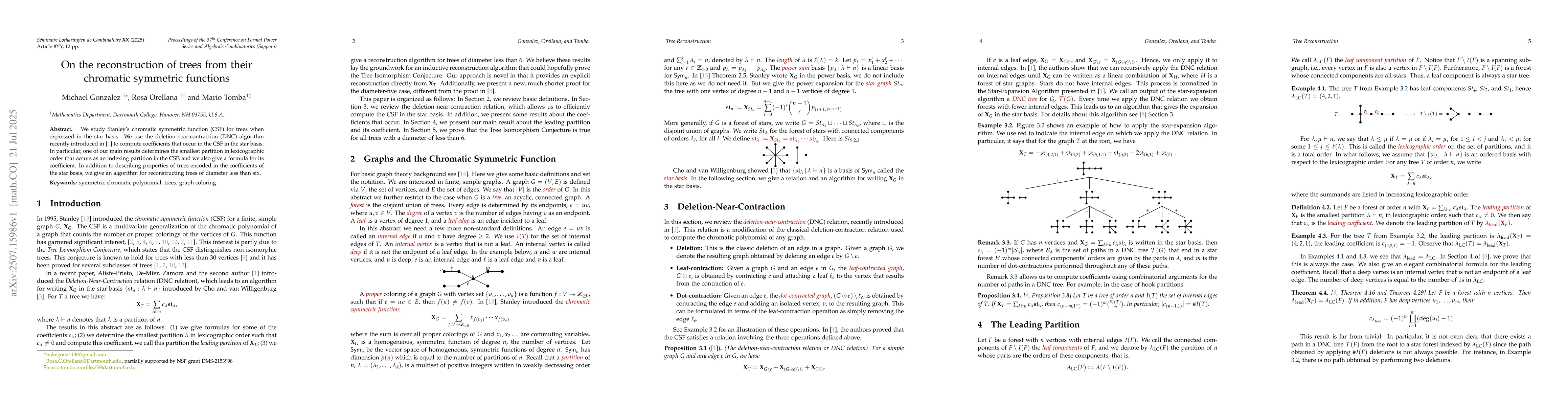 We study Stanley's chromatic symmetric function (CSF) for trees when expressed in the star basis. We use the deletion-near-contraction (DNC) algorithm to compute coefficients that occur in the CSF in the star basis. In particular, one of our main results determines the smallest partition in lexicographic order that occurs as an indexing partition in the CSF, and we also give a formula for its coefficient. In addition to describing properties of trees encoded in the coefficients of the star basis, we give an algorithm for reconstructing trees of diameter less than six.