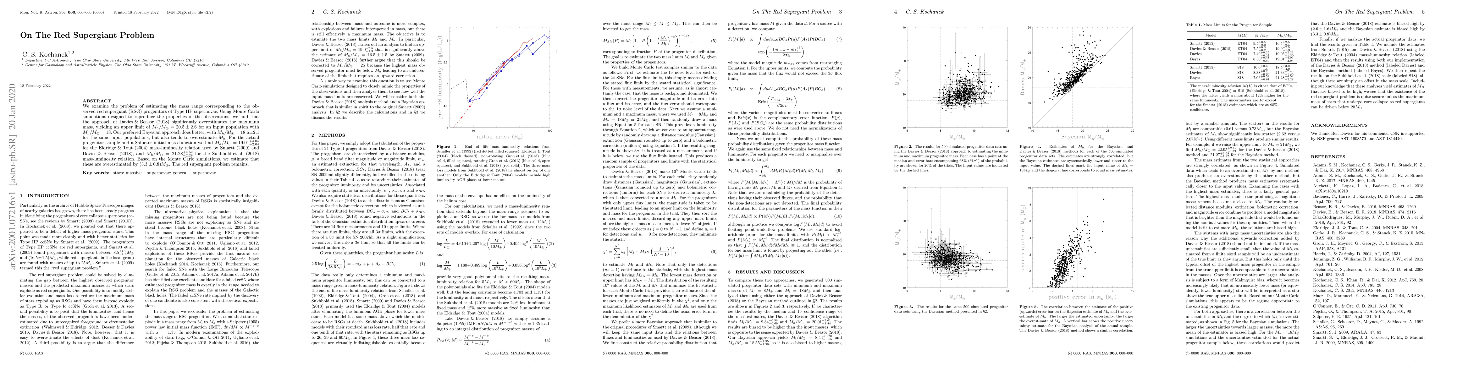 Researchers found that existing methods for estimating the mass range of red supergiant progenitors of Type IIP supernovae overestimate their masses, with estimated upper limits ranging from 19 to 21 times the mass of the Sun.