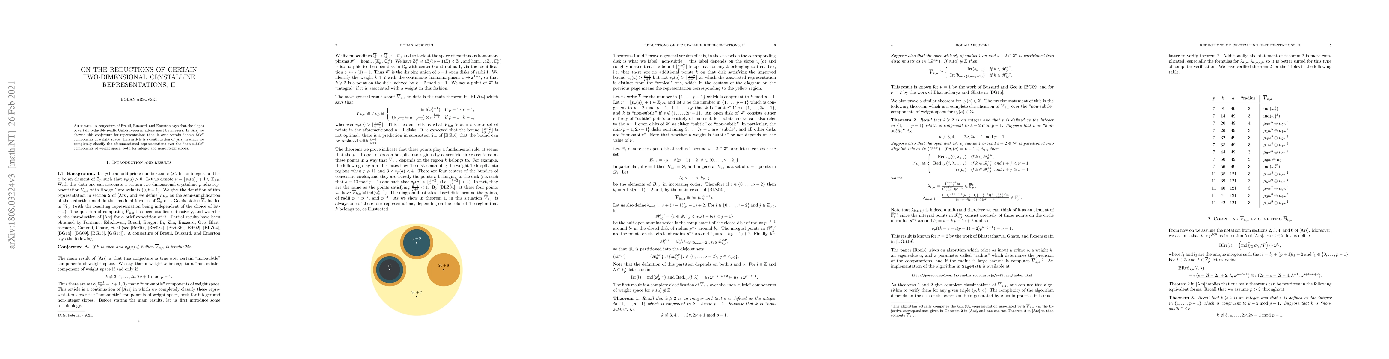 This paper completes the classification of certain two-dimensional crystalline representations over non-subtle components of weight space, confirming a conjecture by Breuil, Buzzard, and Emerton regarding the integer slopes of these representations, both for integer and non-integer slopes.