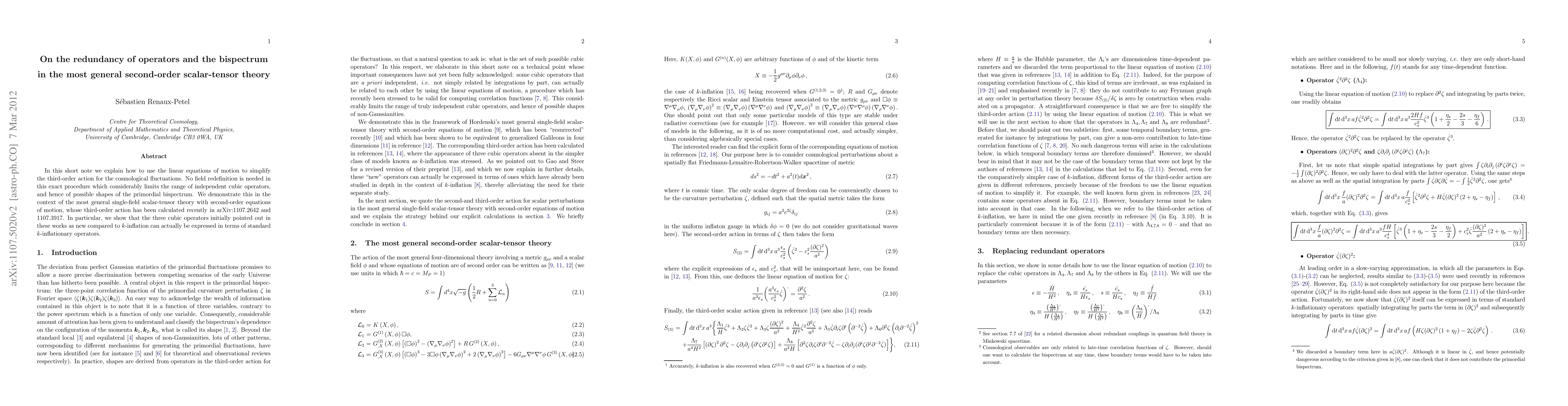In this short note we explain how to use the linear equation of motions to simplify the third-order action for the cosmological fluctuations. No field redefinition is needed in this exact procedure which considerably limits the range of independent cubic operators, and hence of possible shapes of the primordial bispectrum. We demonstrate this in the context of the most general single-field scalar-tensor theory with second-order equations of motion, whose third-order action has been calculated recently in arXiv:1107.2642 and 1107.3917. In particular, we show that the three cubic operators initially pointed out in these works as new compared to k-inflation can actually be expressed in terms of standard k-inflationary operators.