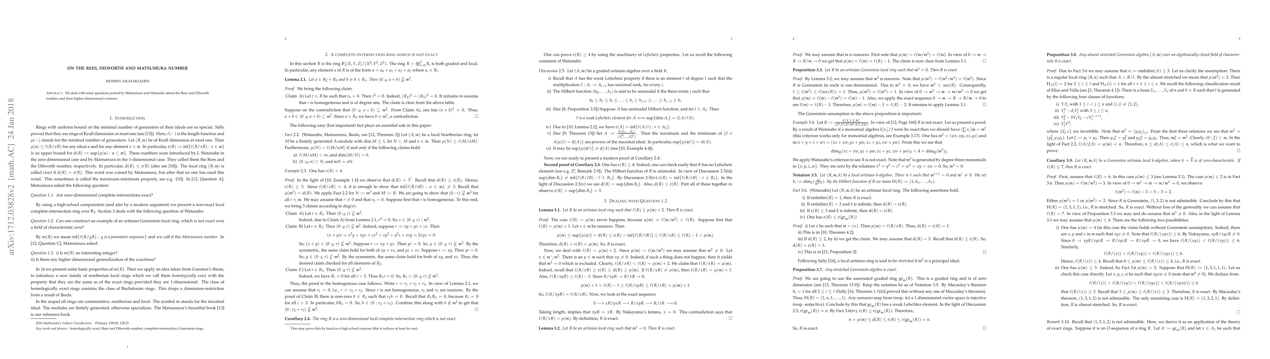 We deal with some questions posted by Matsumura and Watanabe about the Rees and Dilworth number, and their higher-dimensional versions.