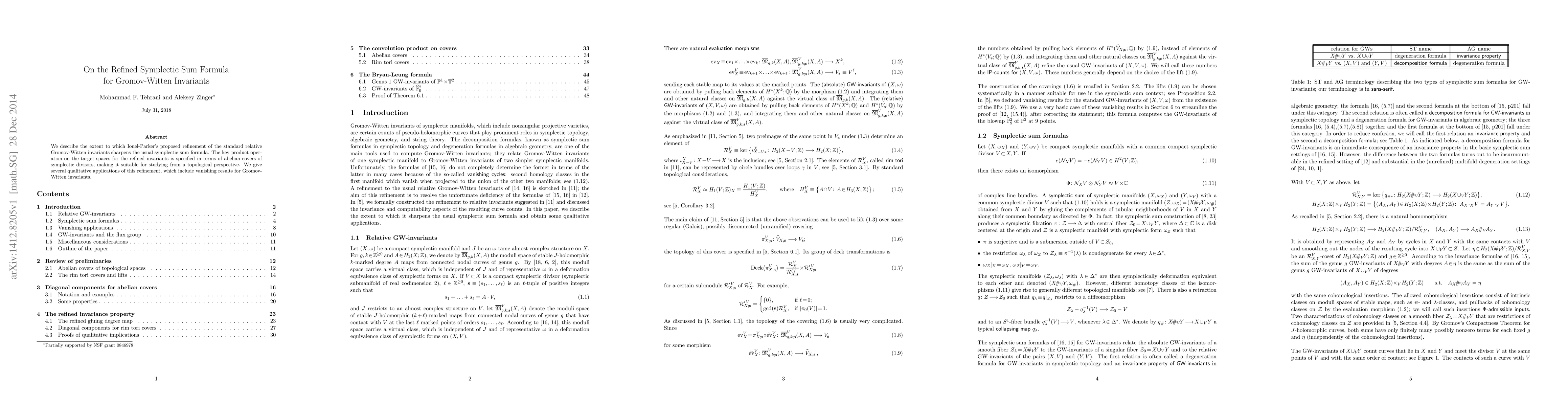We describe the extent to which Ionel-Parker's proposed refinement of the standard relative Gromov-Witten invariants sharpens the usual symplectic sum formula. The key product operation on the target spaces for the refined invariants is specified in terms of abelian covers of symplectic divisors, making it suitable for studying from a topological perspective. We give several qualitative applications of this refinement, which include vanishing results for Gromov-Witten invariants.