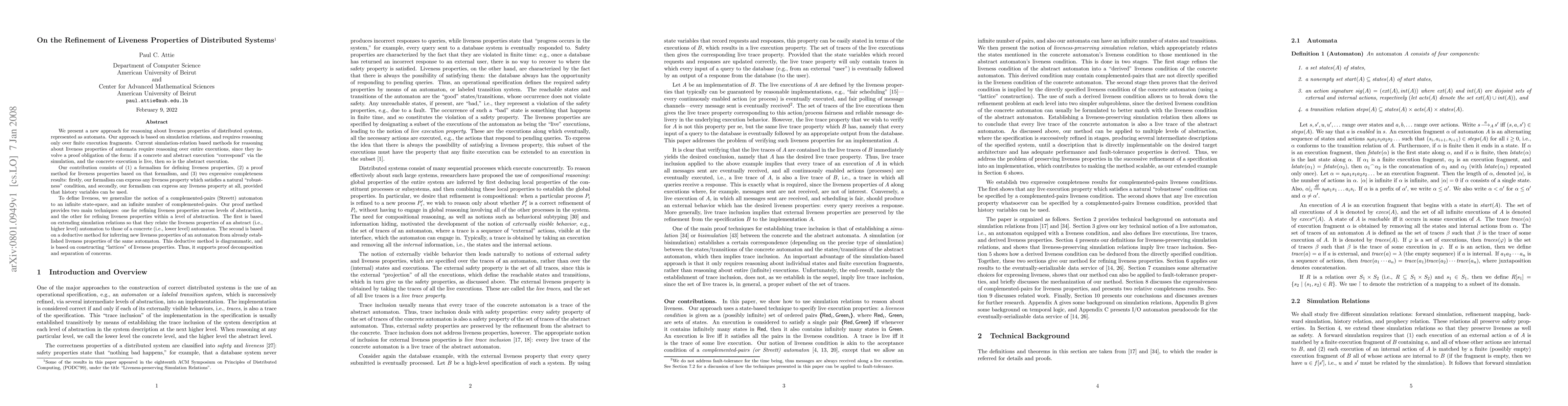 This paper introduces a novel method for reasoning about liveness properties in distributed systems modeled as automata, utilizing simulation relations. It proposes a formalism and proof method that reason over finite execution fragments instead of entire executions, enhancing expressive completeness and robustness.