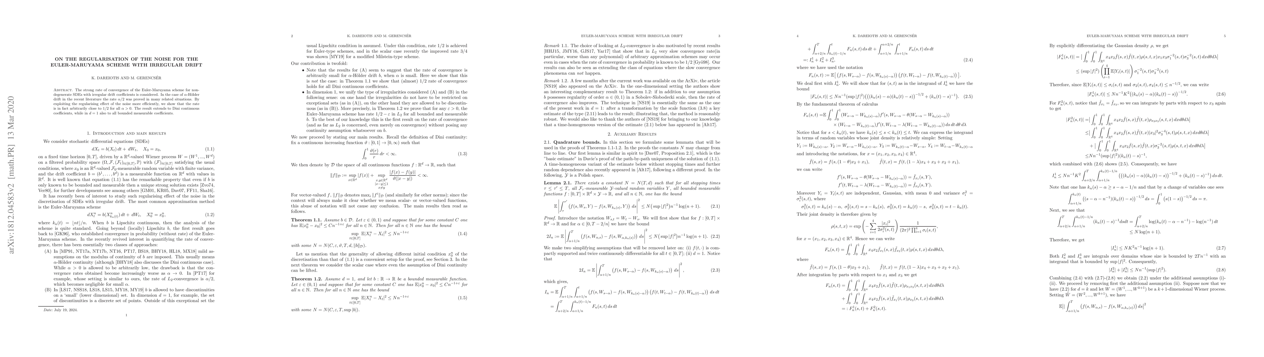 The strong rate of convergence of the Euler-Maruyama scheme for nondegenerate SDEs with irregular drift coefficients is considered. In the case of $\alpha$-H\"older drift in the recent literature the rate $\alpha/2$ was proved in many related situations. By exploiting the regularising effect of the noise more efficiently, we show that the rate is in fact arbitrarily close to $1/2$ for all $\alpha>0$. The result extends to Dini continuous coefficients, while in $d=1$ also to all bounded measurable coefficients.