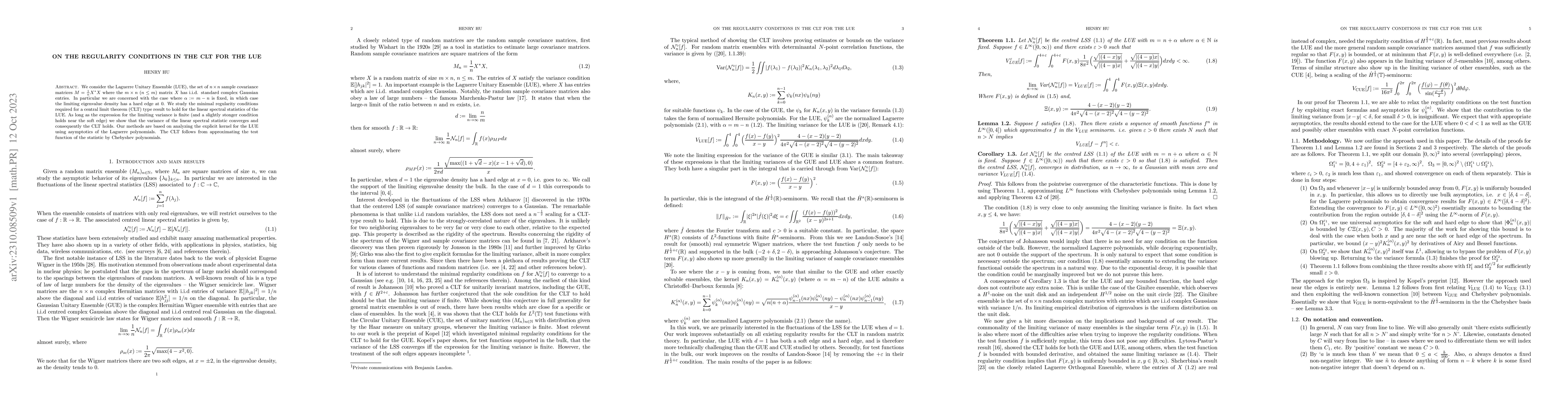 This paper investigates the minimal regularity conditions for a central limit theorem (CLT) for the Laguerre Unitary Ensemble (LUE) when the matrix dimension ratio is fixed. It demonstrates that the CLT holds for linear spectral statistics provided the limiting variance is finite, using asymptotic analysis of Laguerre polynomials and Chebyshev polynomial approximations.