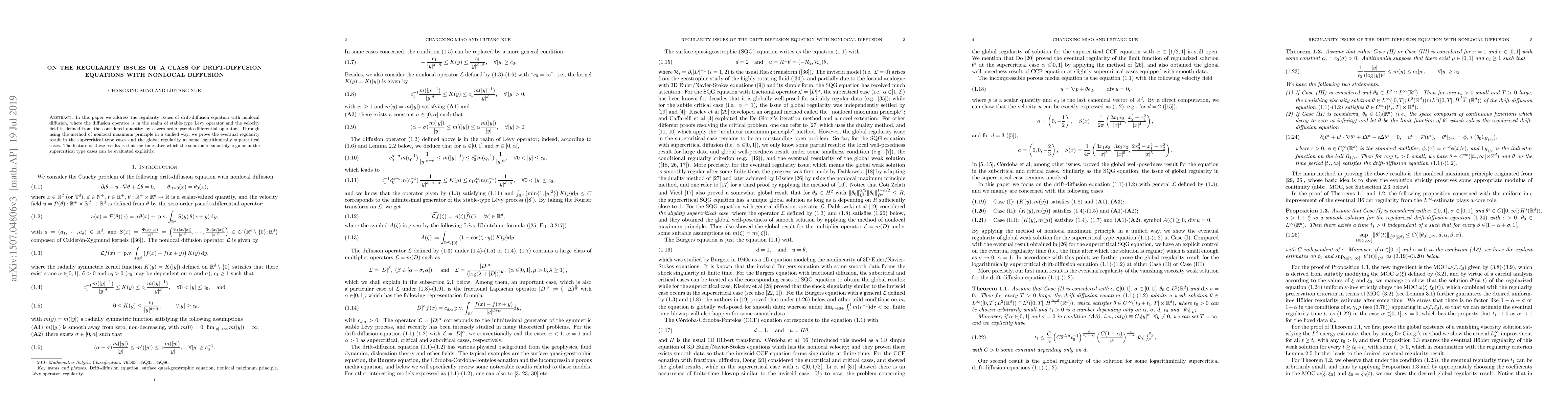 This paper investigates the regularity of drift-diffusion equations with nonlocal diffusion, employing stable-type Lévy operators and zero-order pseudo-differential operators for the velocity field. The study proves eventual regularity in supercritical cases and global regularity in logarithmically supercritical cases, with an explicit evaluation of the time to smooth regularity.