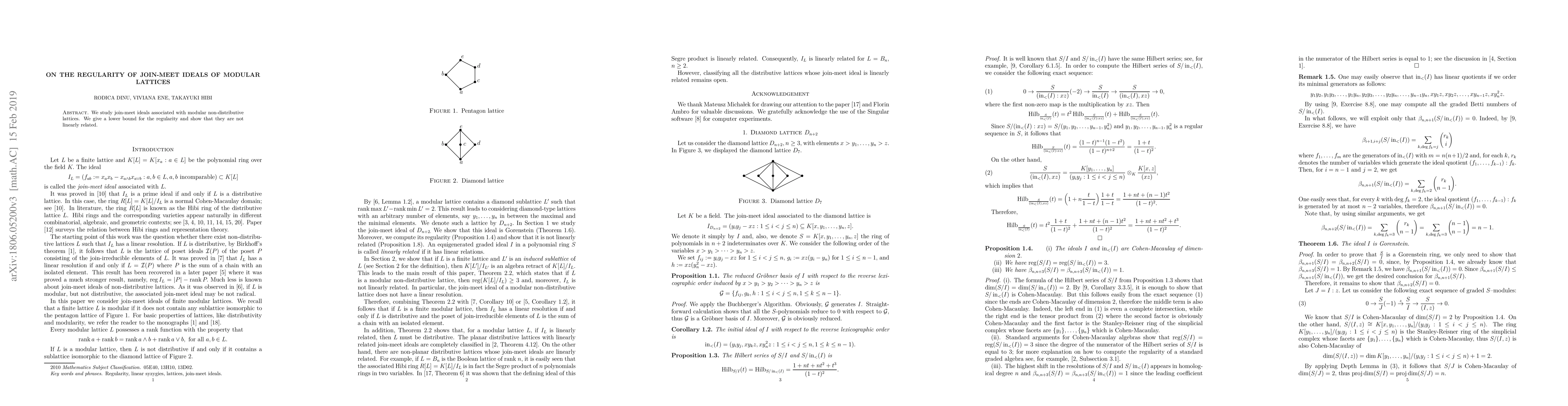 Summary: This paper investigates join-meet ideals in modular non-distributive lattices, establishing a lower bound for their regularity and demonstrating that these ideals are not linearly related.