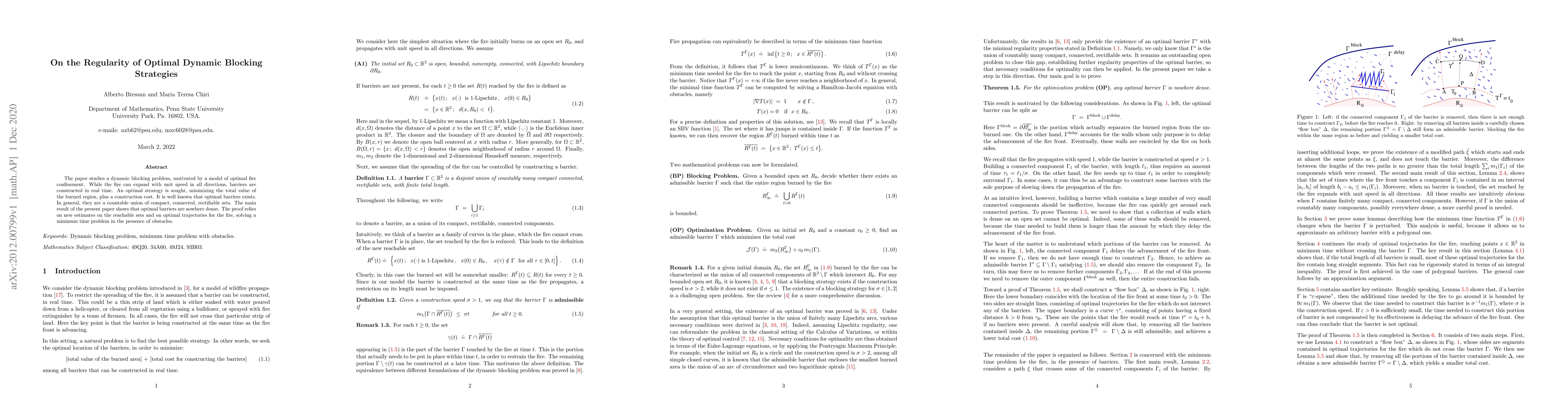 The paper studies a dynamic blocking problem, motivated by a model of optimal fire confinement. While the fire can expand with unit speed in all directions, barriers are constructed in real time. An optimal strategy is sought, minimizing the total value of the burned region, plus a construction cost. It is well known that optimal barriers exists. In general, they are a countable union of compact, connected, rectifiable sets. The main result of the present paper shows that optimal barriers are nowhere dense. The proof relies on new estimates on the reachable sets and on optimal trajectories for the fire, solving a minimum time problem in the presence of obstacles.