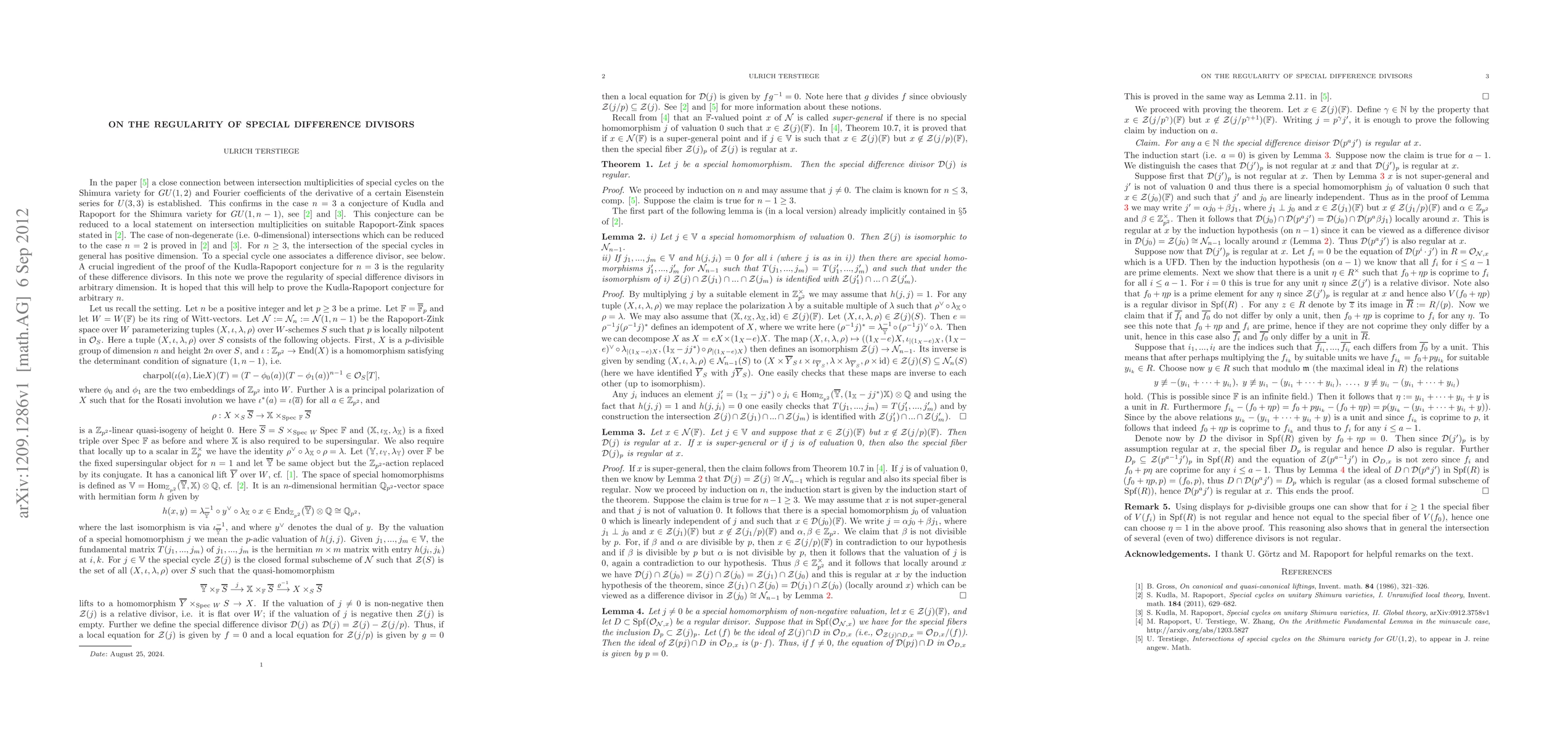 In this note we prove that the difference divisors associated with special cycles on unitary Rapoport-Zink spaces of signature (1,n-1) in the unramified case are always regular.