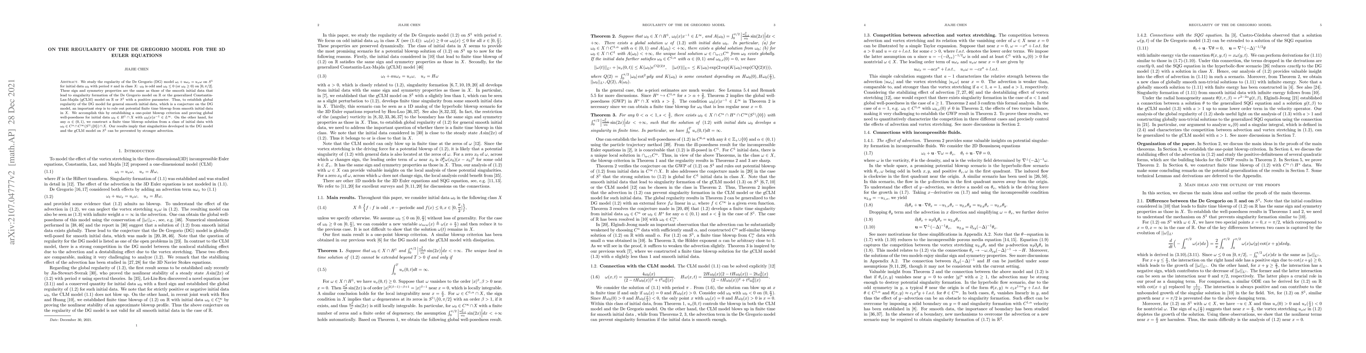 This paper investigates the regularity of the De Gregorio model for the 3D Euler equations on $S^1$ with specific initial conditions. It establishes global well-posedness for smooth initial data in $H^1$ and proves the absence of finite-time blowup, while also constructing finite-time blowup solutions for less regular initial data, indicating that stronger advection can prevent singularities.