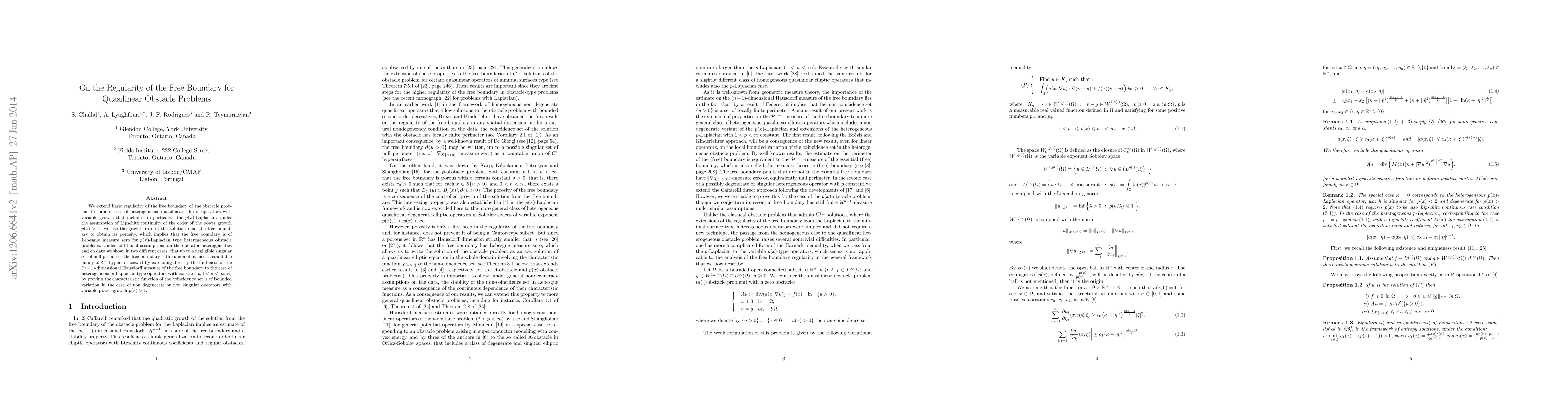 The paper extends regularity results for the free boundary of the obstacle problem to heterogeneous quasilinear elliptic operators with variable growth, including the p(x)-Laplacian, under Lipschitz continuity assumptions.