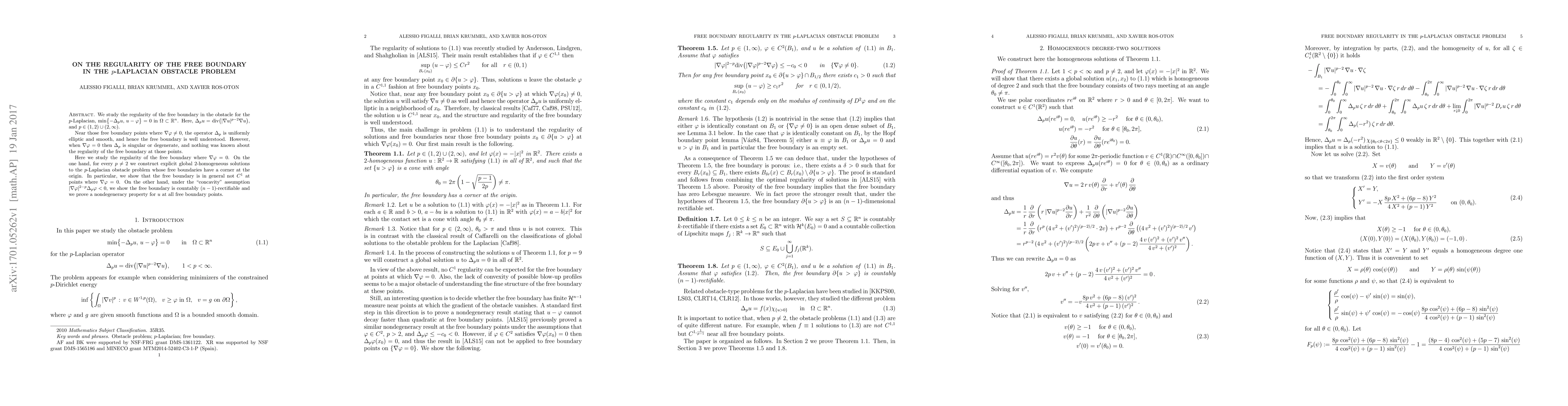 This paper investigates the regularity of free boundaries in the $p$-Laplacian obstacle problem for non-trivial $p$ values, including cases where $ abla heta = 0$, showing that the boundary can have corners or be non-differentiable at those points.