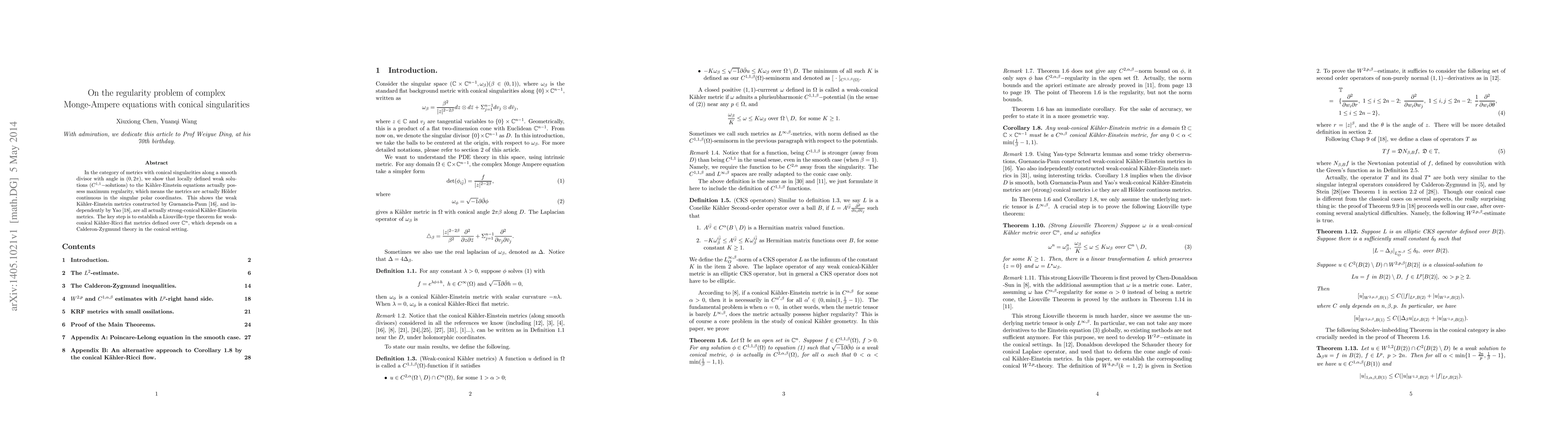 This research proves that weak solutions to Kähler-Einstein equations, with conical singularities along smooth divisors and angles between (0, 2π), are actually Hölder continuous. This establishes a Liouville-type theorem for weak-conical Kähler-Ricci flat metrics over C^n, validating the strong-conical Kähler-Einstein metric construction by Guenancia-Paun and Yao.