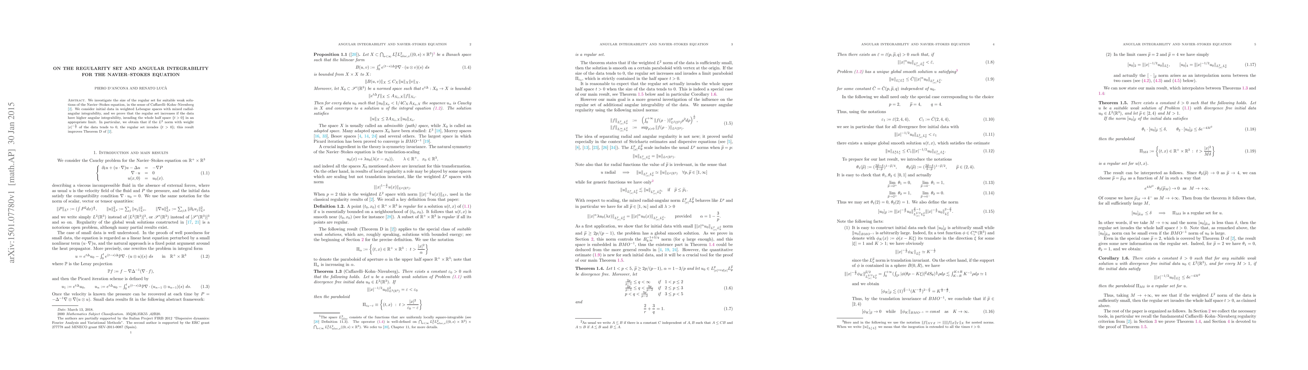 We investigate the size of the regular set for suitable weak solutions of the Navier--Stokes equation, in the sense of Caffarelli--Kohn--Nirenberg. We consider initial data in weighted Lebesgue spaces with mixed radial-angular integrability, and we prove that the regular set increases if the data have higher angular integrability, invading the whole half space $\{t>0\}$ in an appropriate limit. In particular, we obtain that if the $L^{2}$ norm with weight $|x|^{-\frac12}$ of the data tends to 0, the regular set invades $\{t>0\}$.
