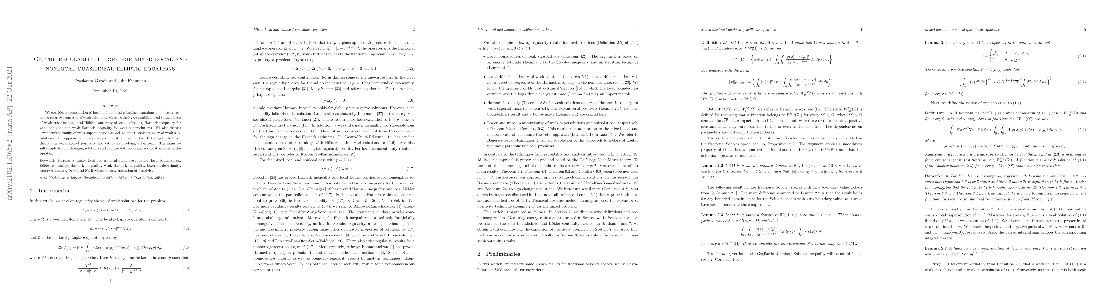 This paper explores the regularity theory for mixed local and nonlocal quasilinear elliptic equations, establishing local boundedness, Hölder continuity, and inequalities for weak solutions using analytic techniques based on De Giorgi-Nash-Moser theory. The results apply to sign-changing solutions and address both local and nonlocal aspects.