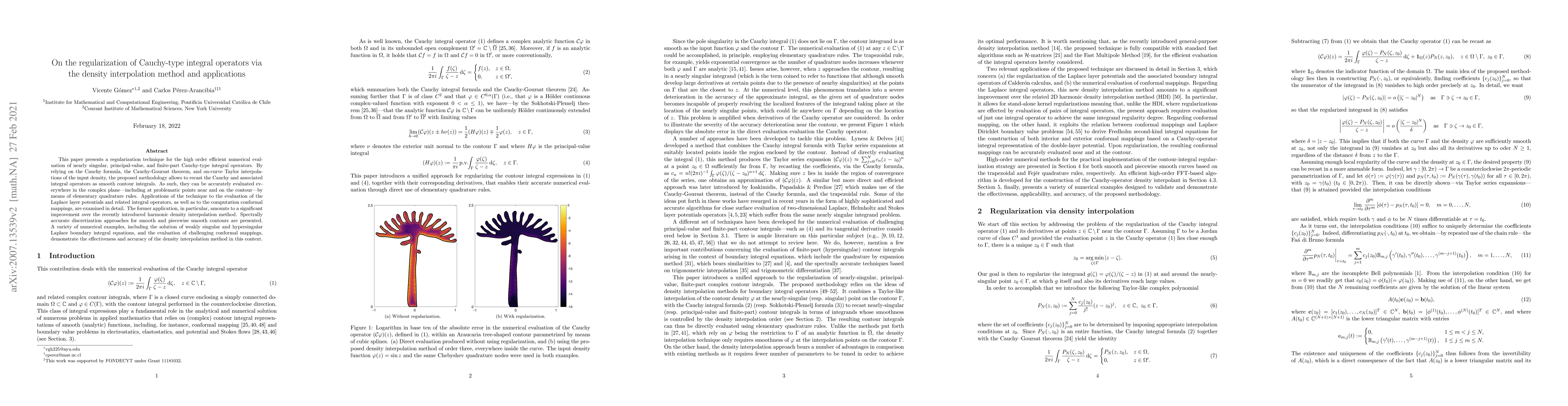 This paper introduces a regularization technique for efficiently evaluating Cauchy-type integral operators using density interpolation, recasting them as smooth contour integrals for accurate evaluation via elementary quadrature rules. The method is applied to Laplace layer potentials and conformal mappings, demonstrating significant improvements and spectral accuracy.