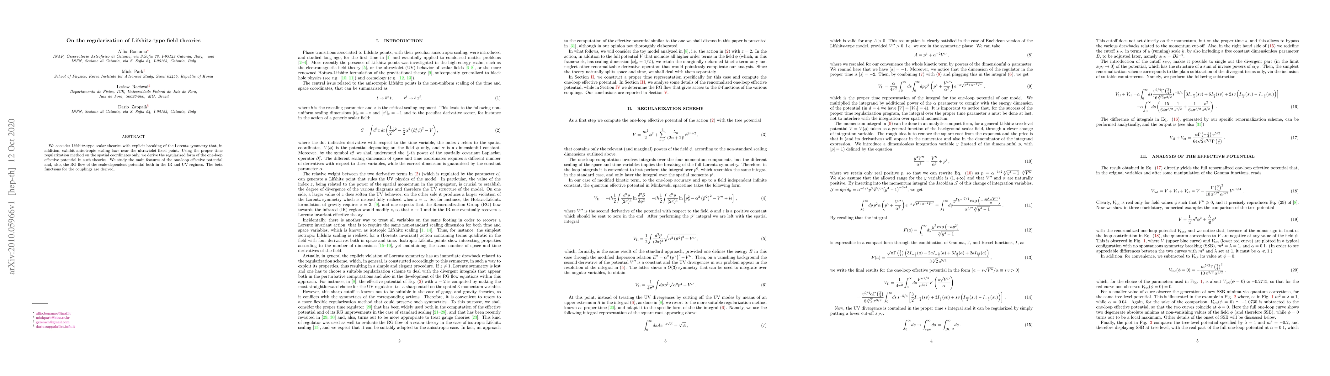 This paper investigates Lifshitz-type scalar field theories with Lorentz symmetry breaking and anisotropic scaling, employing proper time regularization. It derives the one-loop effective potential and analyzes the RG flow and beta functions for the couplings in both infrared and ultraviolet regimes.