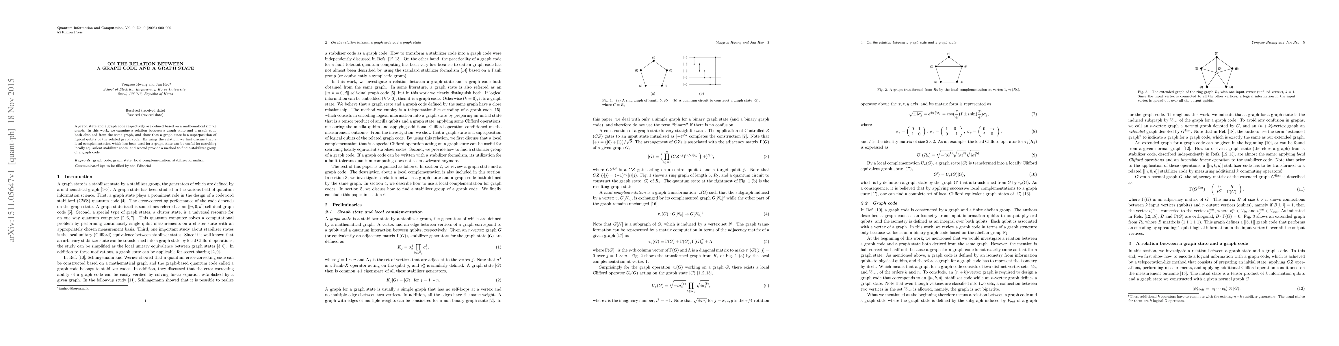 A graph state is shown to be a superposition of logical qubits from a related graph code, with implications for searching locally equivalent stabilizer codes and finding stabilizer groups.