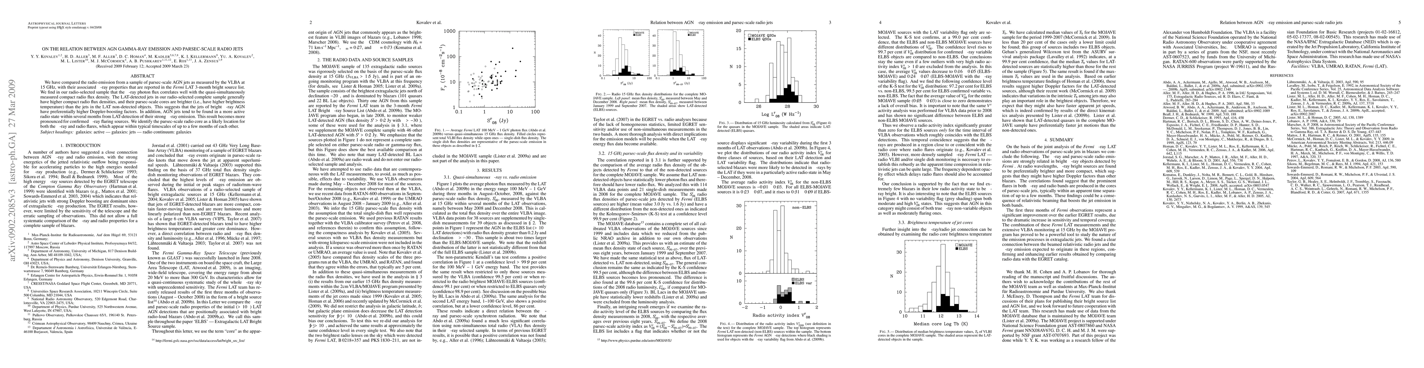 This study finds a strong correlation between gamma-ray photon flux and compact radio flux density in AGN jets, suggesting higher Doppler-boosting factors in bright gamma-ray AGN. The parsec-scale radio core is identified as a likely site for both gamma-ray and radio flares.