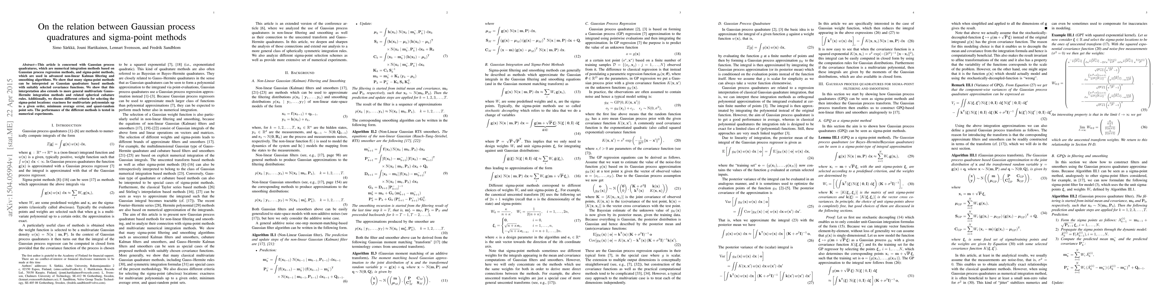 This article is concerned with Gaussian process quadratures, which are numerical integration methods based on Gaussian process regression methods, and sigma-point methods, which are used in advanced non-linear Kalman filtering and smoothing algorithms. We show that many sigma-point methods can be interpreted as Gaussian quadrature based methods with suitably selected covariance functions. We show that this interpretation also extends to more general multivariate Gauss--Hermite integration methods and related spherical cubature rules. Additionally, we discuss different criteria for selecting the sigma-point locations: exactness for multivariate polynomials up to a given order, minimum average error, and quasi-random point sets. The performance of the different methods is tested in numerical experiments.