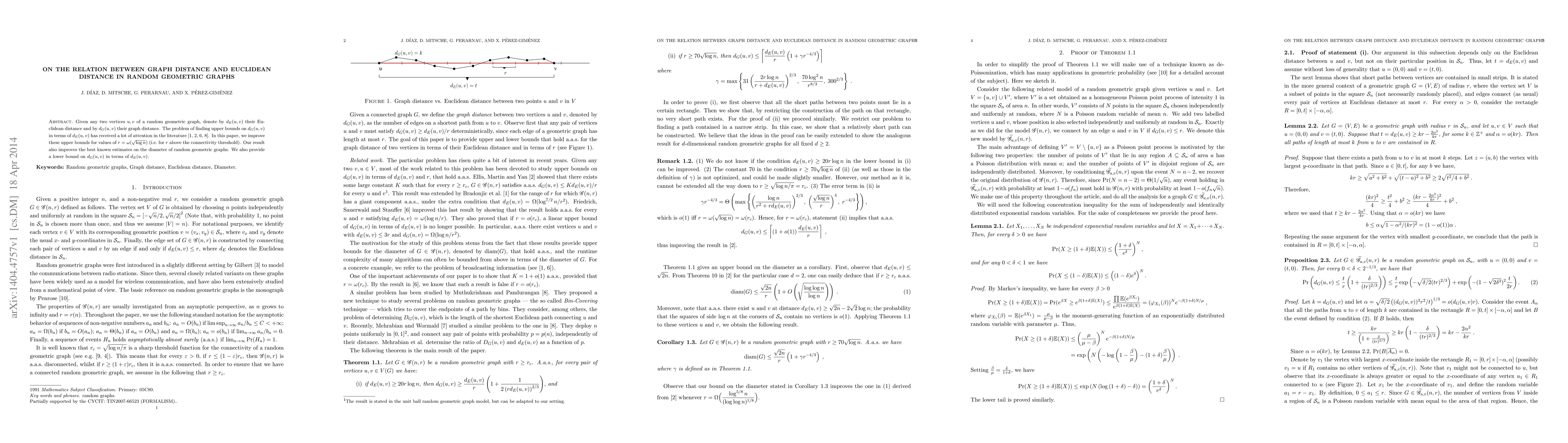 This paper improves upper bounds on the graph distance d_G(u,v) in random geometric graphs for r above the connectivity threshold, enhancing estimates on the graph's diameter. It also provides a lower bound relating graph distance to Euclidean distance.