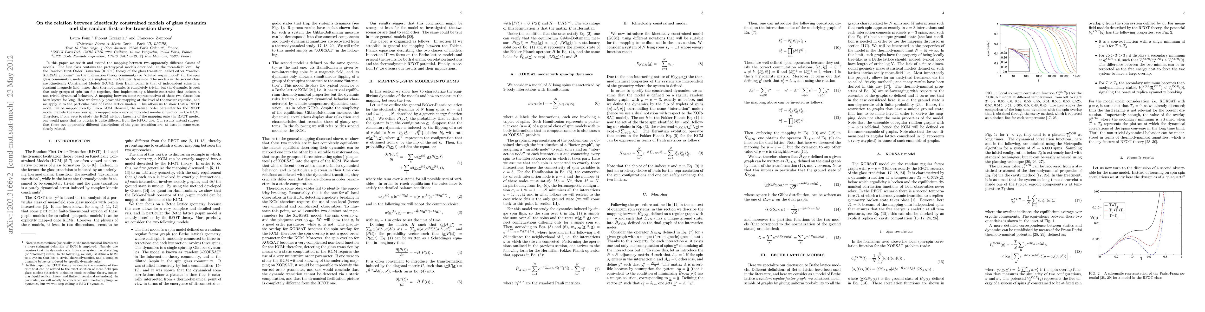 In this paper we revisit and extend the mapping between two apparently different classes of models. The first class contains the prototypical models described --at the mean-field level-- by the Random First Order Transition (RFOT) theory of the glass transition, called either "random XORSAT problem" (in the information theory community) or "diluted $p$-spin model" (in the spin glass community), undergoing a single-spin flip Glauber dynamics. The models in the second class are Kinetically Constrained Models (KCM): their Hamiltonian is that of independent spins in a constant magnetic field, hence their thermodynamics is completely trivial, but the dynamics is such that only groups of spin can flip together, thus implementing a kinetic constraint that induces a non-trivial dynamical behavior. A mapping between some representatives of these two classes has been known for long. Here we formally prove this mapping at the level of the master equation, and we apply it to the particular case of Bethe lattice models. This allows us to show that a RFOT model can be mapped exactly into a KCM. However, the natural order parameter for the RFOT model, namely the spin overlap, is mapped into a very complicated non-local function in the KCM. Therefore, if one were to study the KCM without knowing of the mapping onto the RFOT model, one would guess that its physics is quite different from the RFOT one. Our results instead suggest that these two apparently different descriptions of the glass transition are, at least in some case, closely related.