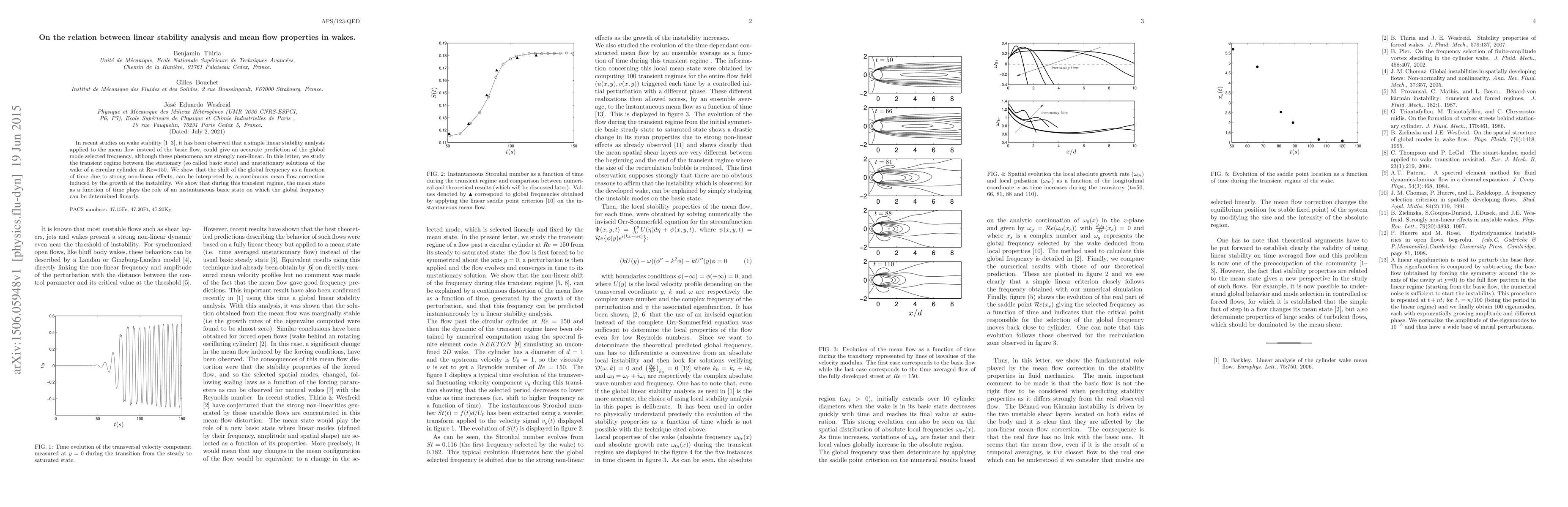 This paper investigates how linear stability analysis applied to the mean flow can predict the global mode frequency in wake dynamics, despite the non-linear nature of the phenomena. It demonstrates that the transient regime in wake flows behind a circular cylinder at Re=150 can be understood through a continuous mean flow correction due to instability growth, effectively using the evolving mean flow as an instantaneous basic state.