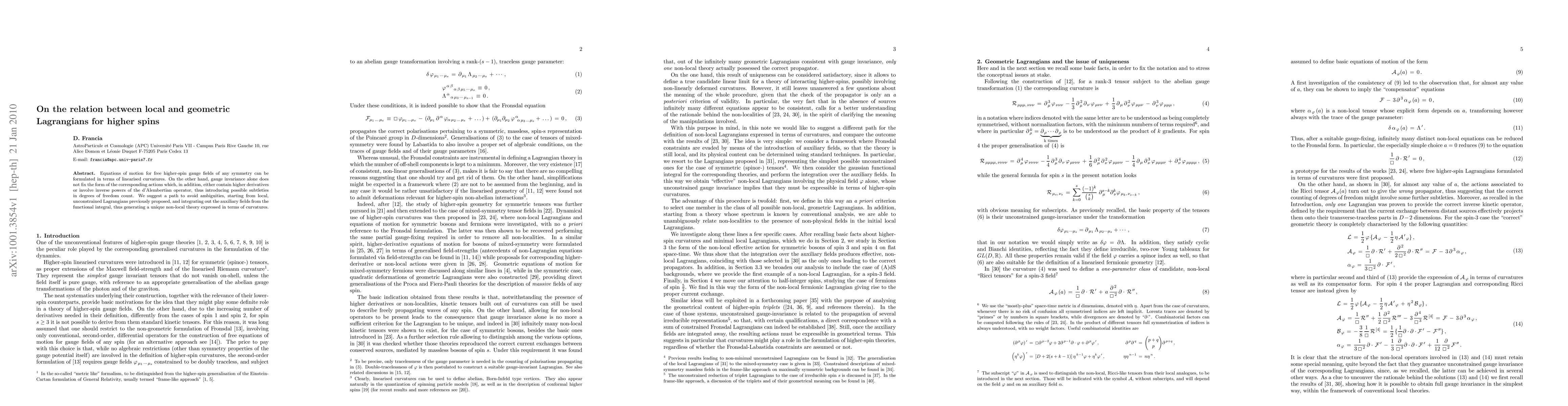 This paper explores the formulation of higher-spin gauge fields using linearised curvatures and addresses the ambiguities in their Lagrangians, proposing a method to derive a unique non-local theory by integrating out auxiliary fields from local unconstrained Lagrangians. The approach aims to resolve issues related to higher derivatives and inverse d'Alembertian operators in the action.
