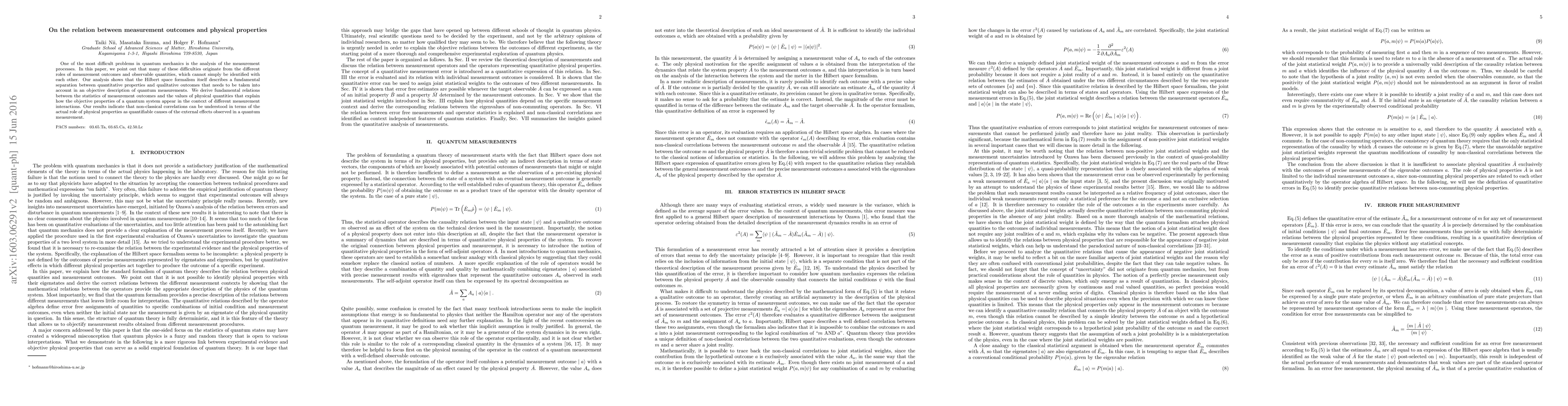 This paper explores the distinction between measurement outcomes and physical properties in quantum mechanics, demonstrating that the Hilbert space formalism inherently separates quantitative properties from qualitative outcomes. It derives fundamental relations that elucidate how objective properties manifest in various measurement interactions, revealing the role of physical properties in generating non-classical correlations.