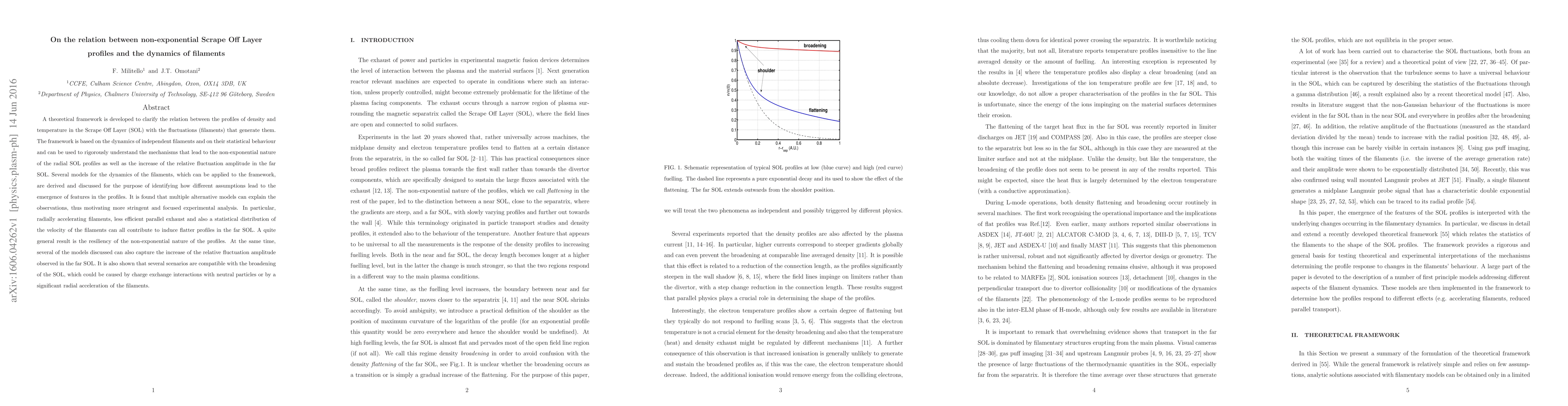 A theoretical framework explains how filaments in a Scrape Off Layer influence its density and temperature profiles, revealing non-exponential profiles and fluctuation amplitudes that can be explained by different filament dynamics models.