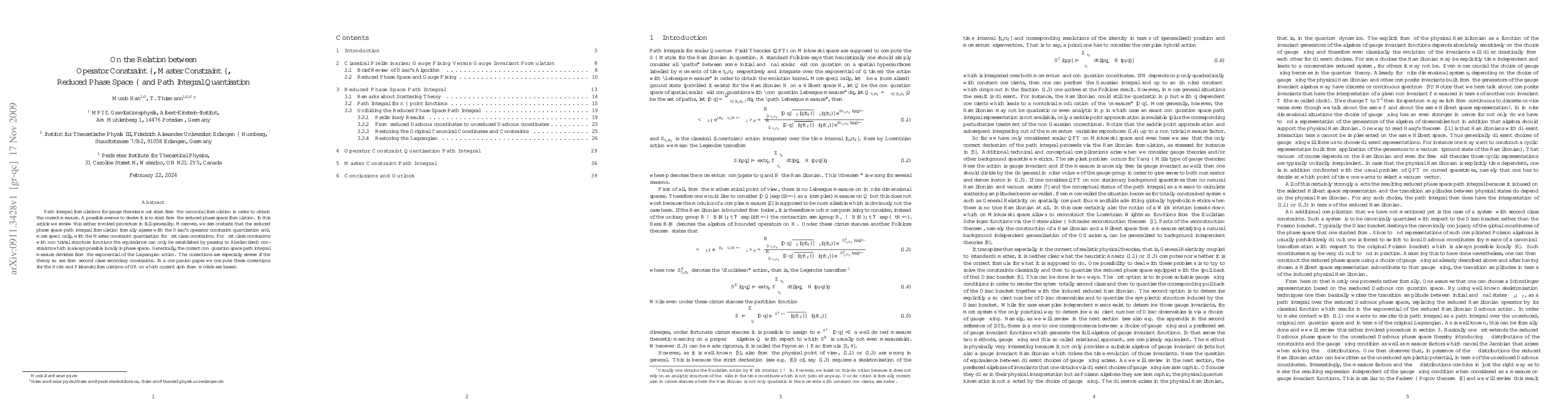 The research reviews the procedure of deriving the path integral formulation for gauge theories from the reduced phase space, demonstrating its equivalence with Dirac's operator constraint quantization and Master constraint quantization for first-class constraints.