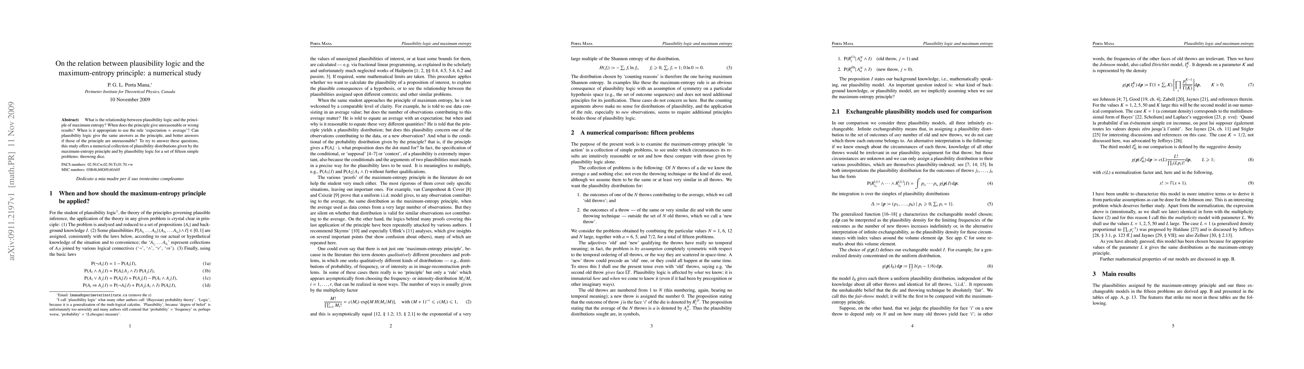 What is the relationship between plausibility logic and the principle of maximum entropy? When does the principle give unreasonable or wrong results? When is it appropriate to use the rule `expectation = average'? Can plausibility logic give the same answers as the principle, and better answers if those of the principle are unreasonable? To try to answer these questions, this study offers a numerical collection of plausibility distributions given by the maximum-entropy principle and by plausibility logic for a set of fifteen simple problems: throwing dice.
