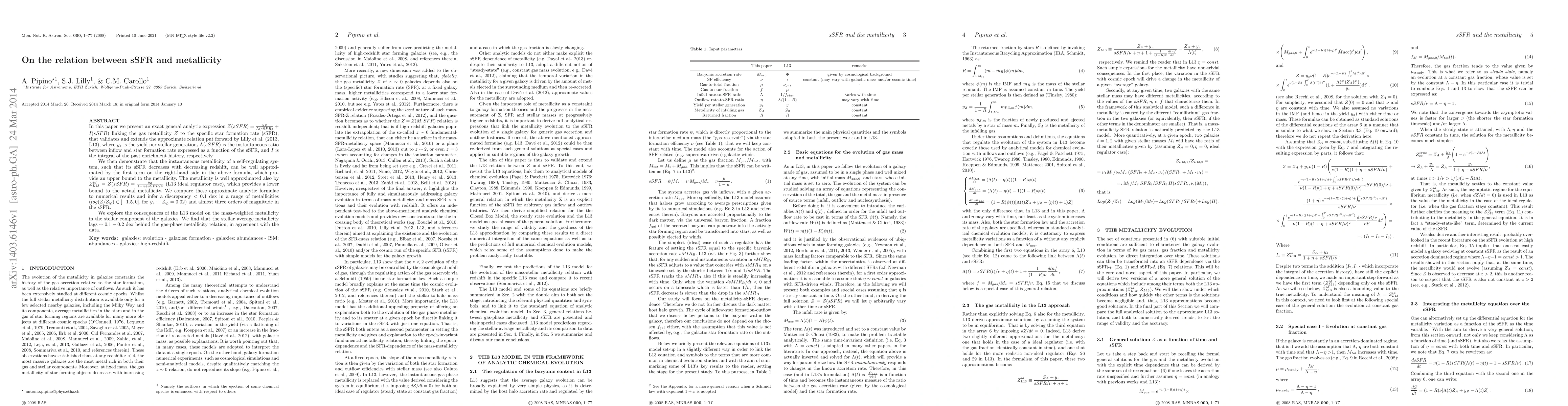 In this paper we present an exact general analytic expression $Z(sSFR)=y/\Lambda(sSFR)+I(sSFR)$ linking the gas metallicity Z to the specific star formation rate (sSFR), that validates and extends the approximate relation put forward by Lilly et al. (2013, L13), where $y$ is the yield per stellar generation, $\Lambda(sSFR)$ is the instantaneous ratio between inflow and star formation rate expressed as a function of the sSFR, and $I$ is the integral of the past enrichment history, respectively. We then demonstrate that the instantaneous metallicity of a self-regulating system, such that its sSFR decreases with decreasing redshift, can be well approximated by the first term on the right-hand side in the above formula, which provides an upper bound to the metallicity. The metallicity is well approximated also by the L13 ideal regulator case, which provides a lower bound to the actual metallicity. We compare these approximate analytic formulae to numerical results and infer a discrepancy <0.1 dex in a range of metallicities and almost three orders of magnitude in the sSFR. We explore the consequences of the L13 model on the mass-weighted metallicity in the stellar component of the galaxies. We find that the stellar average metallicity lags 0.1-0.2 dex behind the gas-phase metallicity relation, in agreement with the data. (abridged)