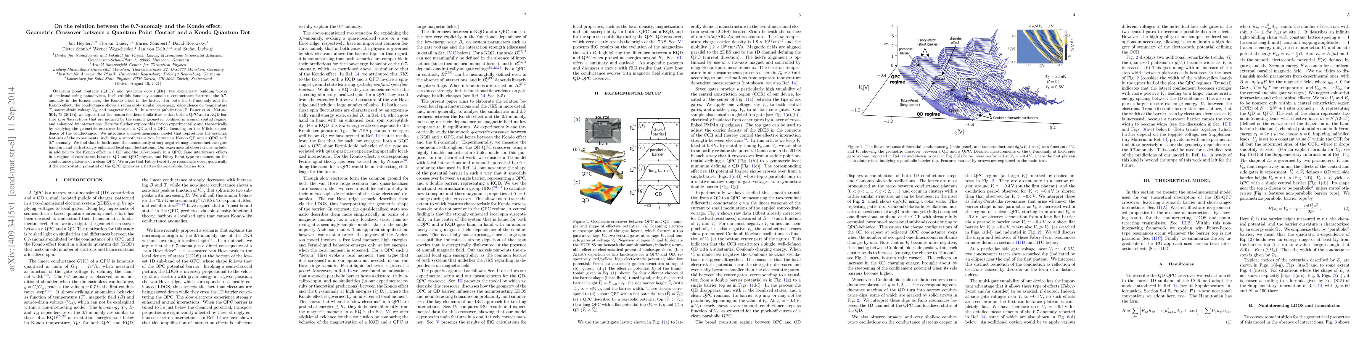 Quantum point contacts (QPCs) and quantum dots (QDs), two elementary building blocks of semiconducting nanodevices, both exhibit famously anomalous conductance features: the 0.7-anomaly in the former case, the Kondo effect in the latter. For both the 0.7-anomaly and the Kondo effect, the conductance shows a remarkably similar low-energy dependence on temperature $T$, source-drain voltage $V_{\rm sd}$ and magnetic field $B$. In a recent publication [F. Bauer et al., Nature, 501, 73 (2013)], we argued that the reason for these similarities is that both a QPC and a KQD feature spin fluctuations that are induced by the sample geometry, confined in a small spatial regime, and enhanced by interactions. Here we further explore this notion experimentally and theoretically by studying the geometric crossover between a QD and a QPC, focussing on the $B$-field dependence of the conductance. We introduce a one-dimensional model that reproduces the essential features of the experiments, including a smooth transition between a Kondo QD and a QPC with 0.7-anomaly. We find that in both cases the anomalously strong negative magnetoconductance goes hand in hand with strongly enhanced local spin fluctuations. Our experimental observations include, in addition to the Kondo effect in a QD and the 0.7-anomaly in a QPC, Fano interference effects in a regime of coexistence between QD and QPC physics, and Fabry-Perot-type resonances on the conductance plateaus of a clean QPC. We argue that Fabry-Perot-type resonances occur generically if the electrostatic potential of the QPC generates a flatter-than-parabolic barrier top.