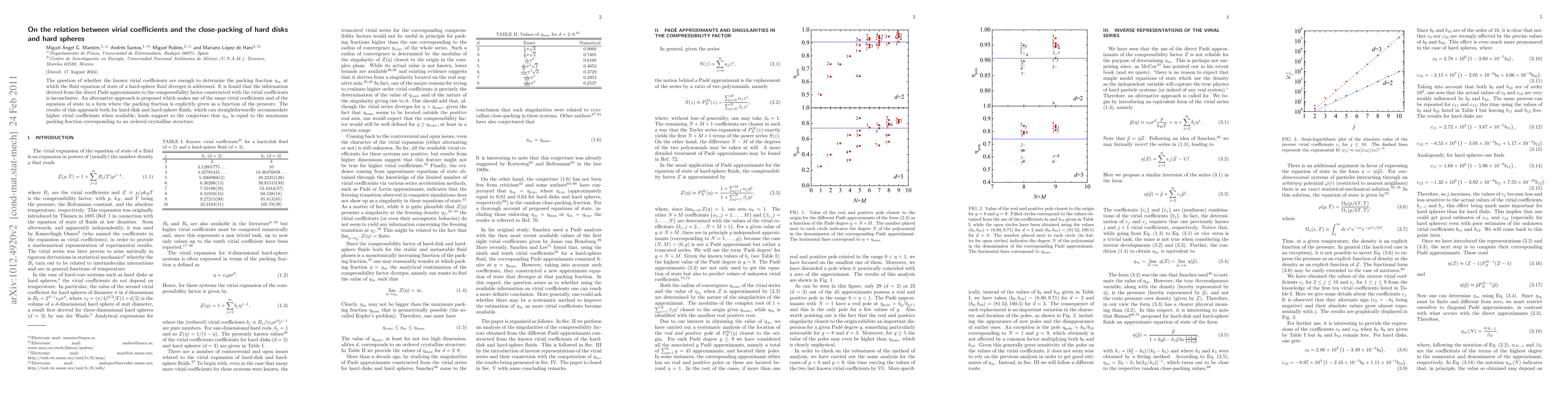 This paper investigates whether virial coefficients can determine the packing fraction at which hard-sphere fluids diverge. It finds that direct Padé approximants are inconclusive, but an alternative method using the equation of state supports the conjecture that the divergence occurs at the maximum packing fraction corresponding to an ordered structure.
