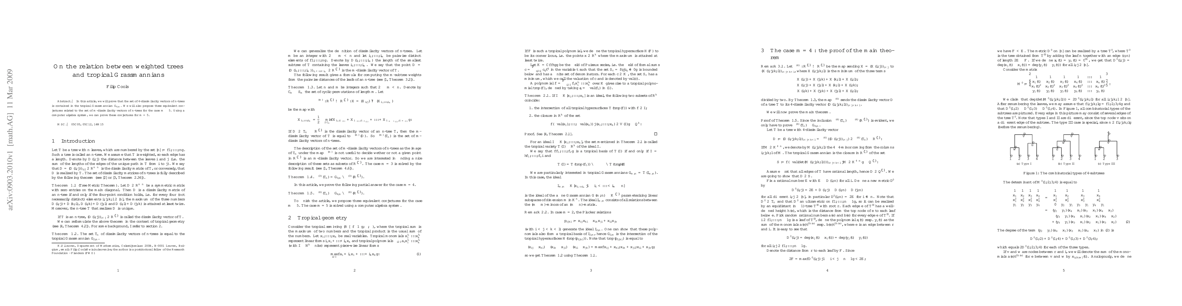 In this article, we will prove that the set of 4-dissimilarity vectors of n-trees is contained in the tropical Grassmannian G_{4,n}. We will also propose three equivalent conjectures related to the set of m-dissimilarity vectors of n-trees for the case m > 4. Using a computer algebra system, we can prove these conjectures for m = 5.
