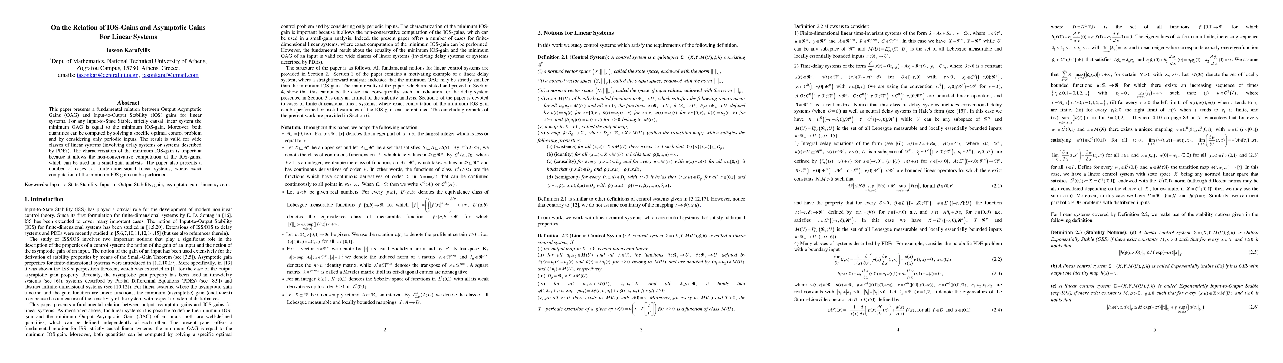 This paper establishes a fundamental relation between two measures of stability for linear systems: Output Asymptotic Gains (OAG) and Input-to-Output Stability (IOS) gains, showing that the minimum OAG is equal to the minimum IOS gain in all input-to-state stable systems.