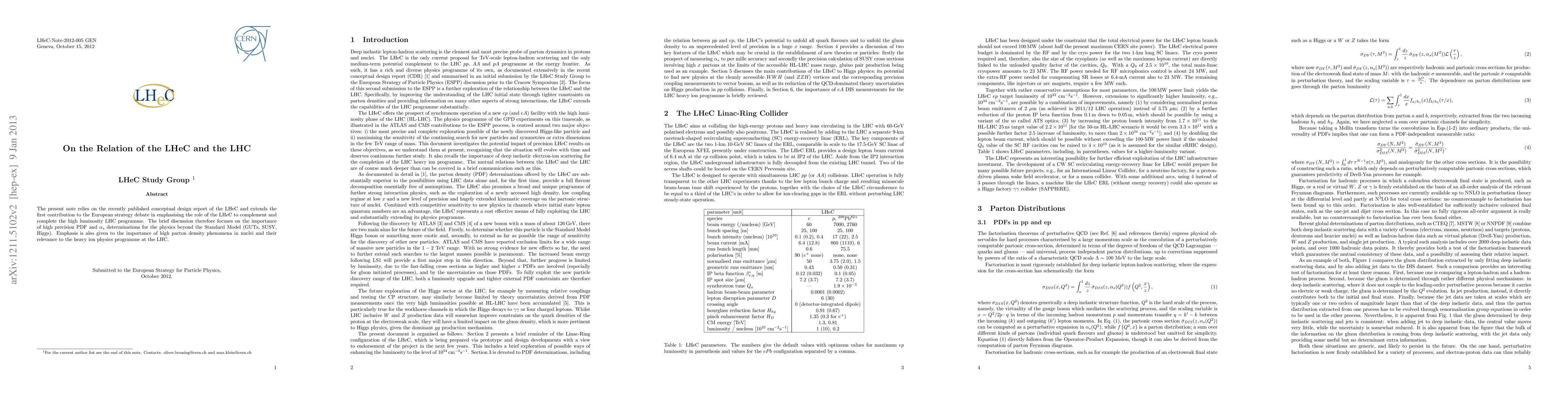The present note relies on the recently published conceptual design report of the LHeC and extends the first contribution to the European strategy debate in emphasising the role of the LHeC to complement and complete the high luminosity LHC programme. The brief discussion therefore focuses on the importance of high precision PDF and $\alpha_s$ determinations for the physics beyond the Standard Model (GUTs, SUSY, Higgs). Emphasis is also given to the importance of high parton density phenomena in nuclei and their relevance to the heavy ion physics programme at the LHC.