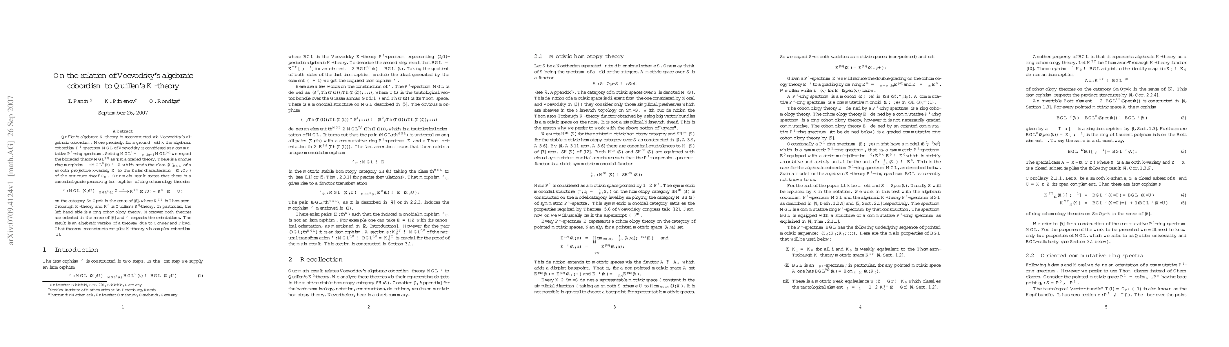 The paper reconstructs Quillen's algebraic K-theory using Voevodsky's algebraic cobordism, establishing a canonical isomorphism between their respective ring cohomology theories on smooth varieties. This isomorphism preserves gradings and orientations, paralleling a theorem by Conner and Floyd for complex K-theory.