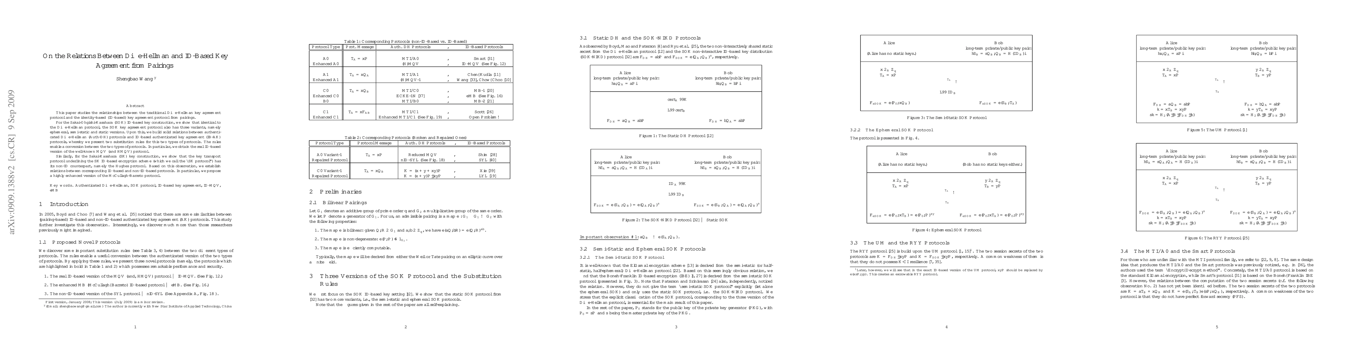 This paper explores the connections between the Diffie-Hellman key agreement protocol and identity-based key agreement protocols derived from pairings. It establishes three variants of the SOK ID-based key agreement and presents substitution rules for converting between Diffie-Hellman and ID-based authenticated key agreement protocols, resulting in a real ID-based version of the MQV protocol. Additionally, it relates the SK ID-based encryption scheme to the Hughes protocol and proposes an enhanced version of the McCullagh-Barreto protocol.