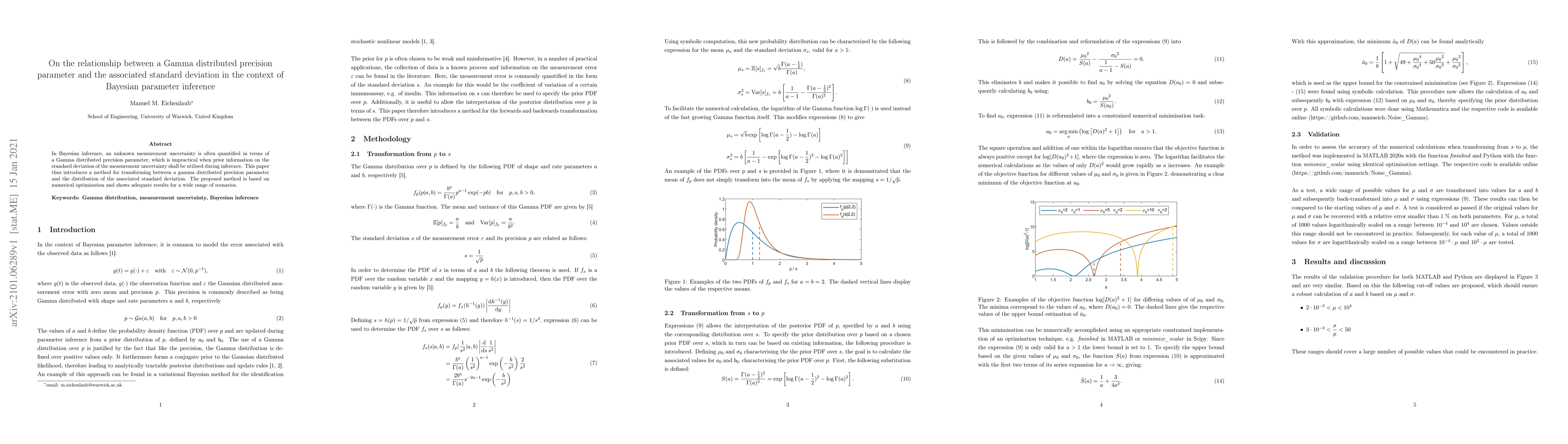 A new method is introduced to transform between a Gamma distributed precision parameter and its associated standard deviation in Bayesian inference, using numerical optimization with good results across various scenarios.
