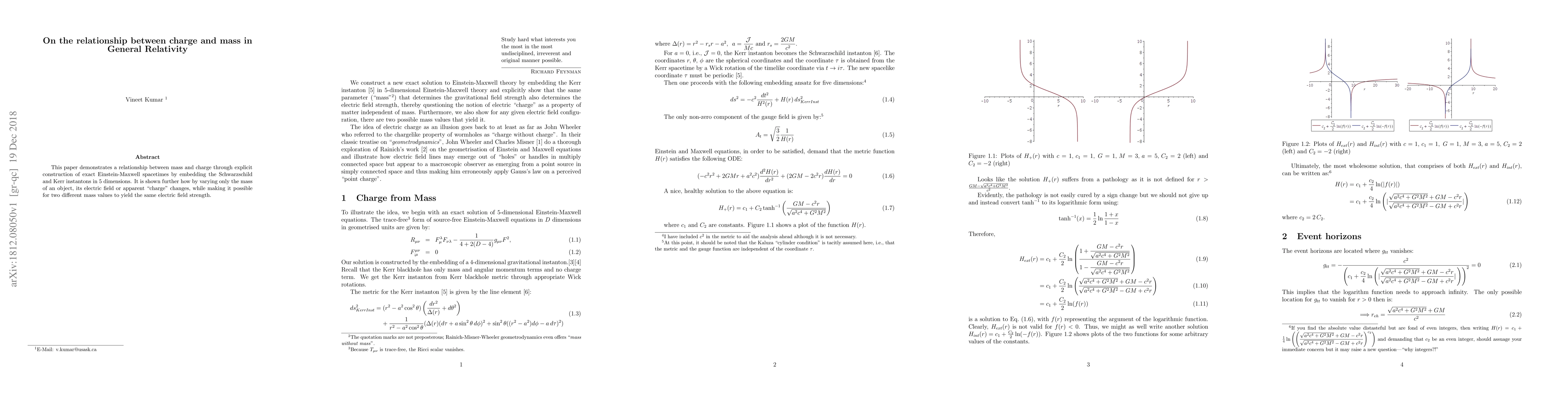 Researchers discovered a connection between mass and charge in General Relativity by creating 5-dimensional spacetimes that embed Schwarzschild and Kerr instantons. They found that varying the mass of an object can change its electric field, even if two different masses yield the same electric field strength.