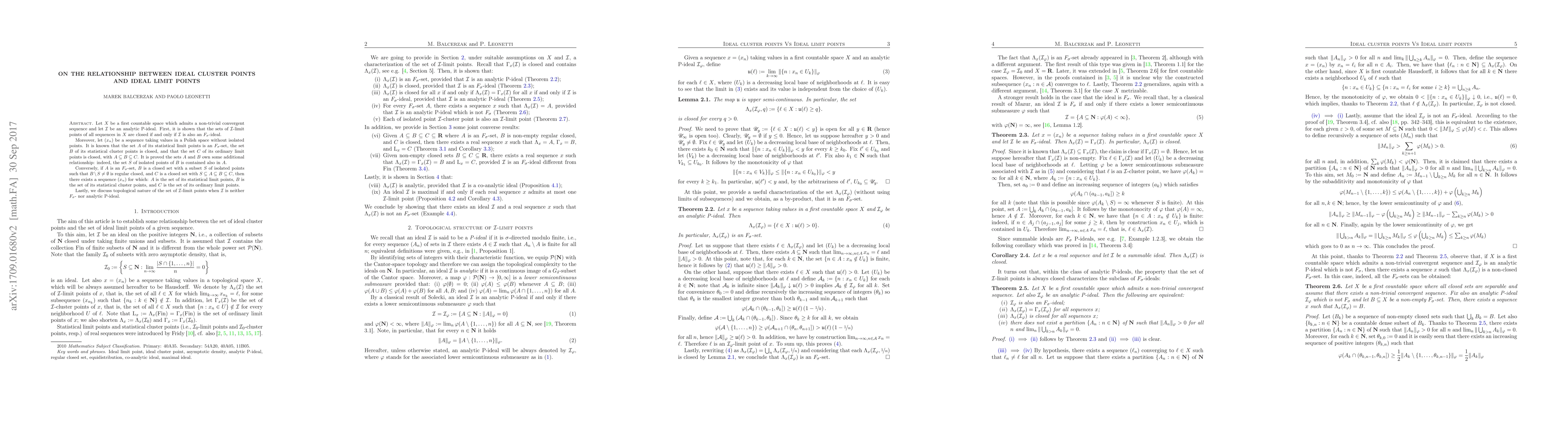 This paper investigates the topological properties of ideal limit points in first countable spaces, proving that the sets of $\mathcal{I}$-limit points of all sequences are closed if $\mathcal{I}$ is an $F_\sigma$-ideal. It further explores the relationships between statistical limit points, cluster points, and ordinary limit points in Polish spaces, showing that the set of isolated points of cluster points is contained within the set of statistical limit points.