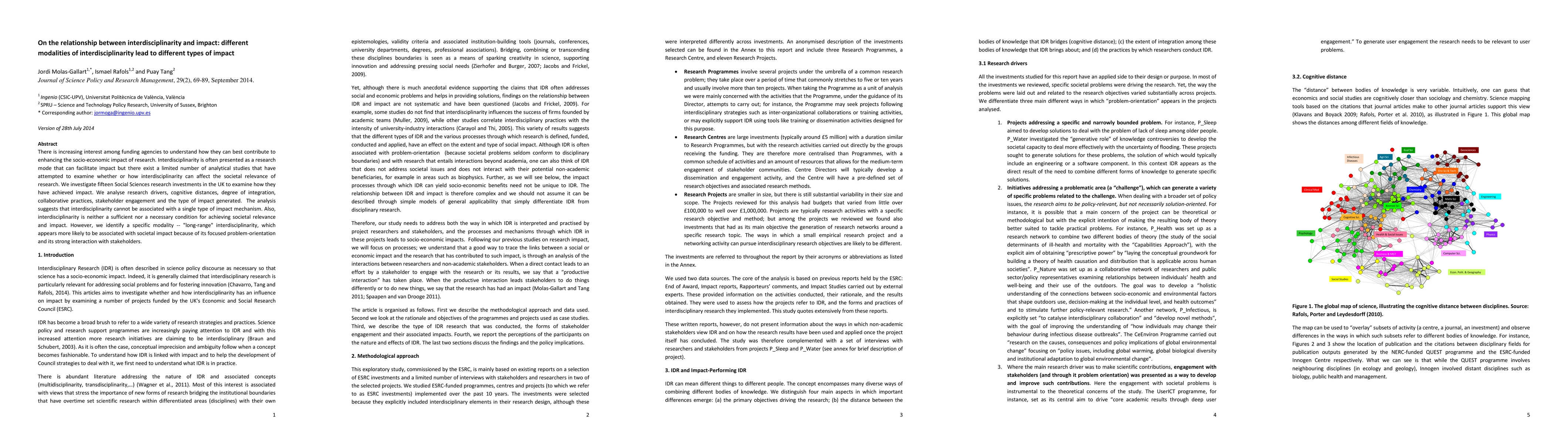 This paper examines the relationship between interdisciplinarity and research impact, finding that different modalities of interdisciplinarity lead to varied types of impact. It identifies "long-range" interdisciplinarity as particularly effective for societal relevance due to its problem-oriented focus and stakeholder engagement.