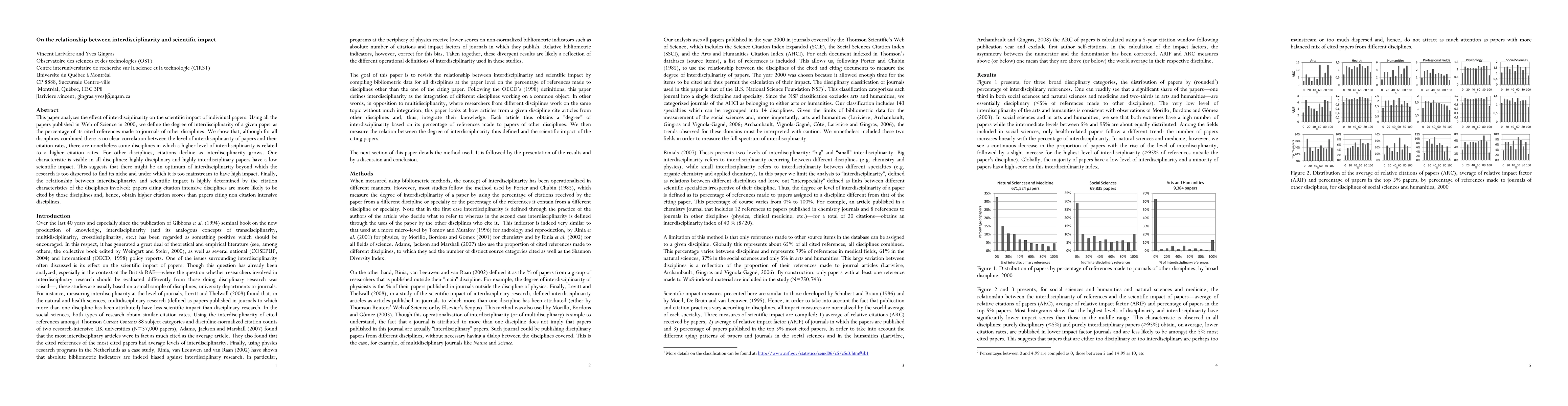 This paper investigates the correlation between interdisciplinarity and scientific impact across various disciplines, finding that while no clear global trend exists, some disciplines benefit from higher interdisciplinarity in terms of citation rates, while others suffer. The study concludes that an optimal level of interdisciplinarity exists for maximizing scientific impact.