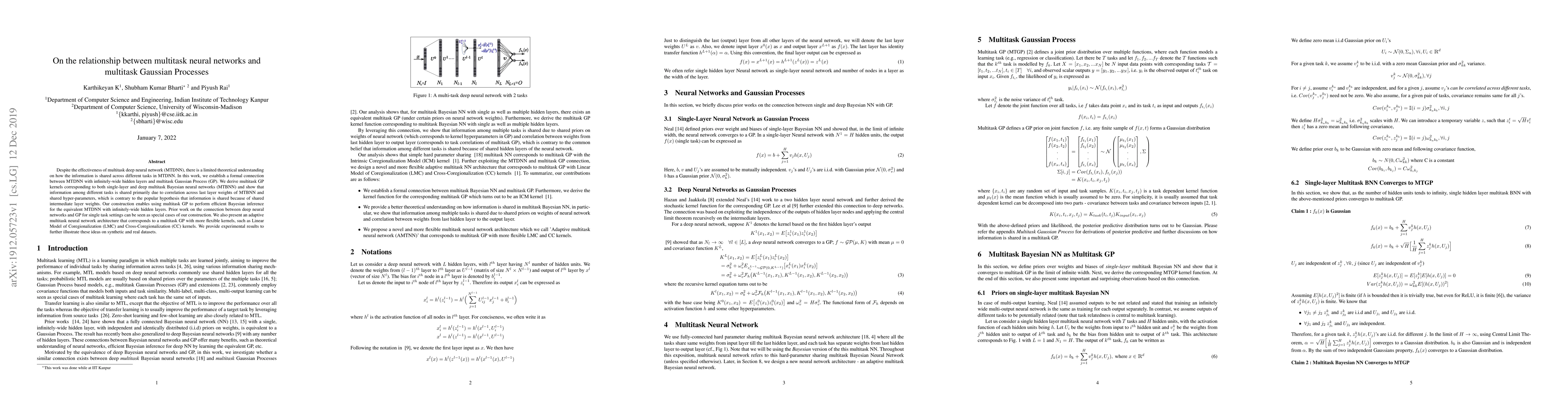 This paper establishes a theoretical connection between multitask deep neural networks (MTDNN) and multitask Gaussian Processes (GP), showing that information sharing in MTDNN primarily occurs through correlations in last layer weights and shared hyperparameters, rather than shared intermediate layers. It also introduces an adaptive multitask neural network architecture corresponding to flexible multitask GP kernels and demonstrates its effectiveness through experiments.
