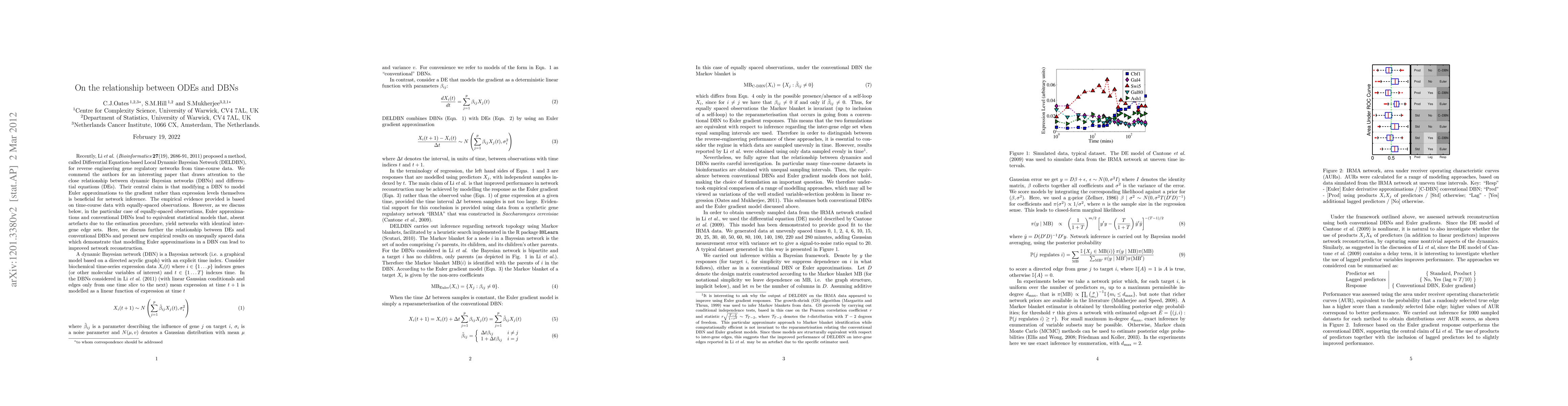 Recently, Li et al. (Bioinformatics 27(19), 2686-91, 2011) proposed a method, called Differential Equation-based Local Dynamic Bayesian Network (DELDBN), for reverse engineering gene regulatory networks from time-course data. We commend the authors for an interesting paper that draws attention to the close relationship between dynamic Bayesian networks (DBNs) and differential equations (DEs). Their central claim is that modifying a DBN to model Euler approximations to the gradient rather than expression levels themselves is beneficial for network inference. The empirical evidence provided is based on time-course data with equally-spaced observations. However, as we discuss below, in the particular case of equally-spaced observations, Euler approximations and conventional DBNs lead to equivalent statistical models that, absent artefacts due to the estimation procedure, yield networks with identical inter-gene edge sets. Here, we discuss further the relationship between DEs and conventional DBNs and present new empirical results on unequally spaced data which demonstrate that modelling Euler approximations in a DBN can lead to improved network reconstruction.